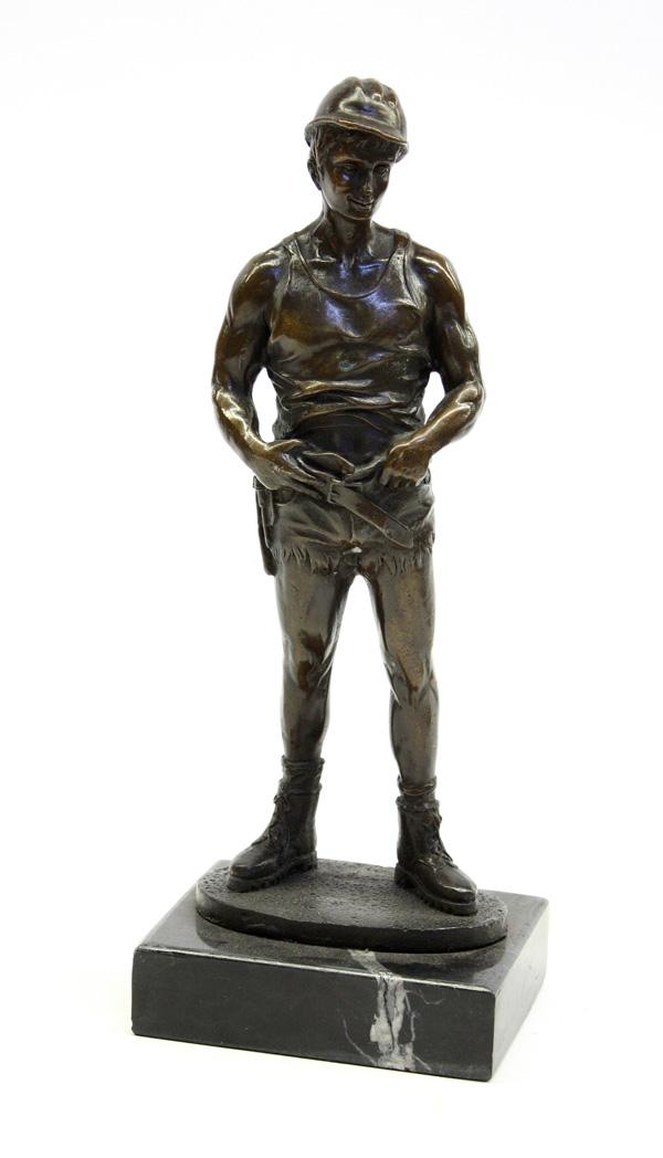 Patinated bronze figure ''The Carpenter'' bonded to a black marble plinth, 11.5''h