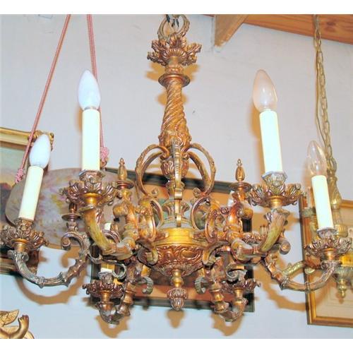 Beautiful bronze 6 lights chandelier, rewired , measures 20 inches H and 23 inches wide.