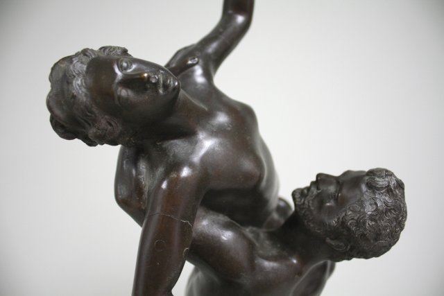 Ca. late 19th/early 20thc After Giambologna, Approx. 25"H 32"H with base Small stains on bronze slight wear to patina