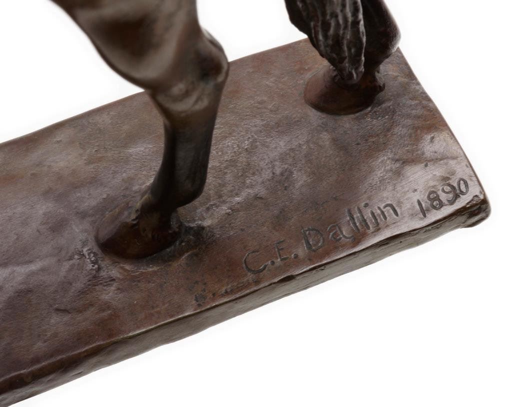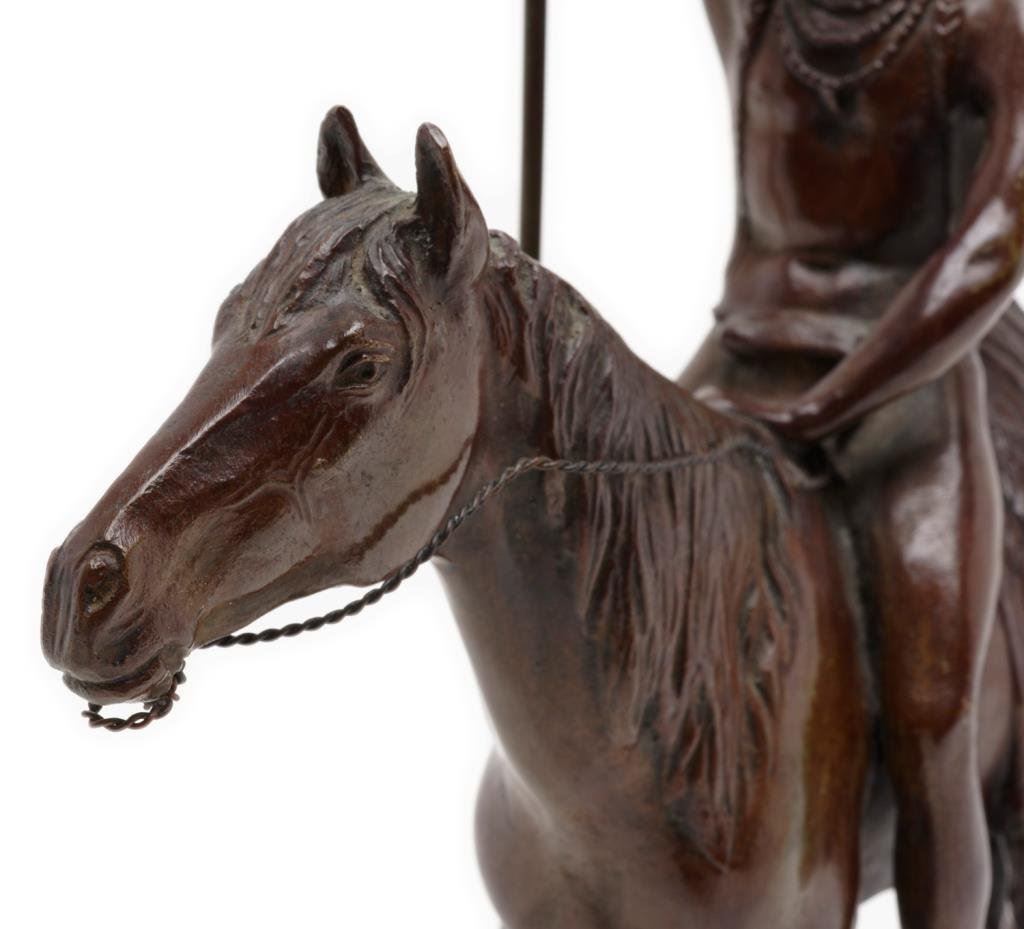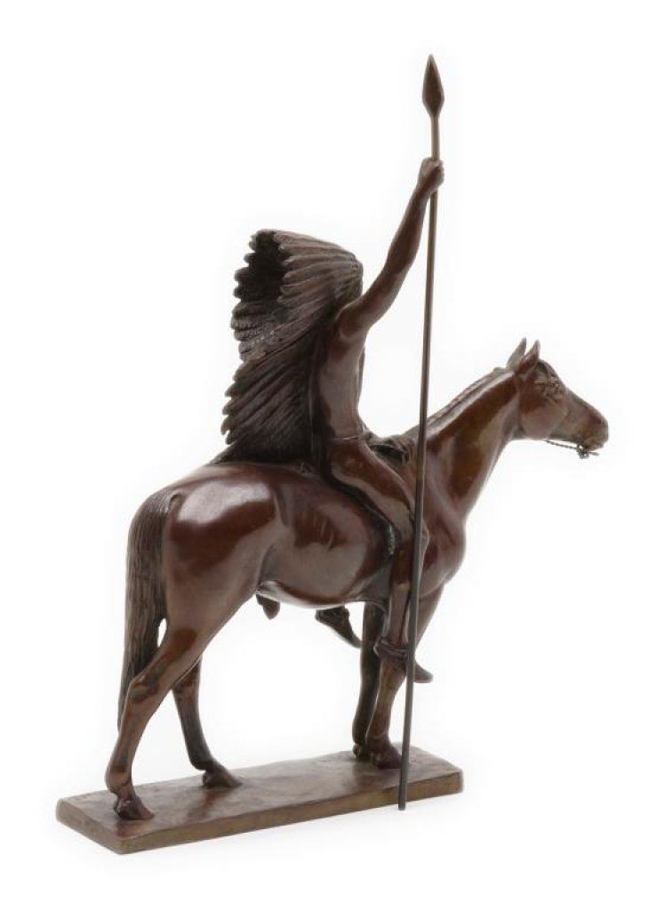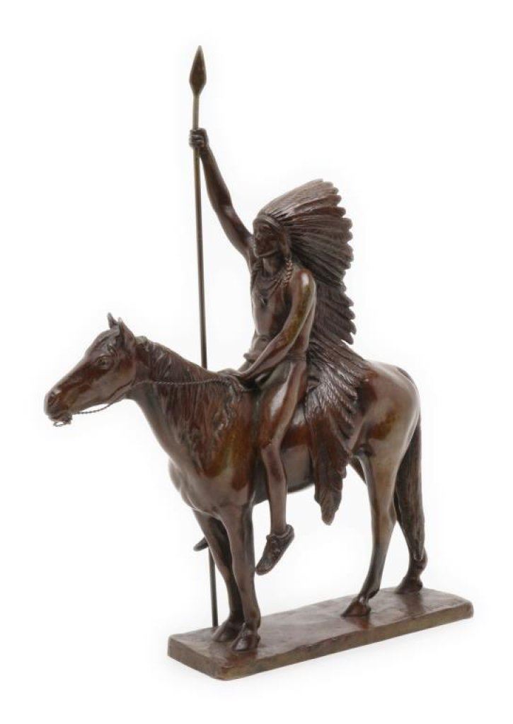 Bronze of Indian warrior with lance on horseback, approximately 12” in height and 9” overall; signed “C.E. Dallin, 1890”; Gorham Foundry marked and beautifully accomplished! Est.: $500-$1,000.