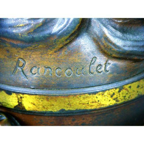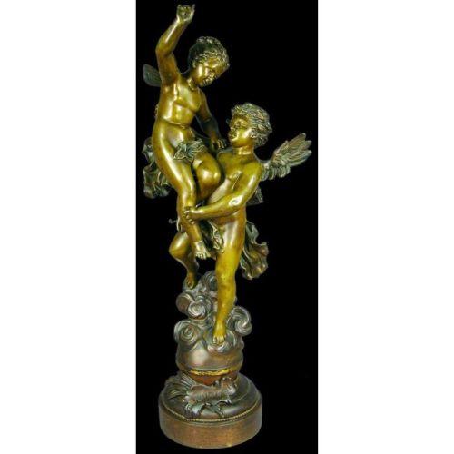 Bronze statue of two cherubs. Entitled Triumphator, and signed Rancoulet. Excellent condition. 27 inches tall.