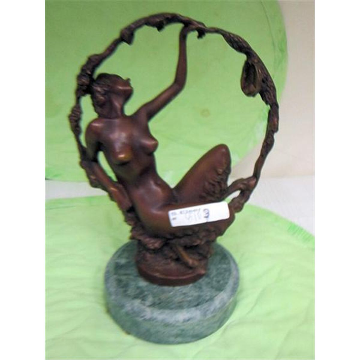 Bronze statue on marble stone base green - naked women in circle of grapes and flowers - marked on back name?? - 10 tall