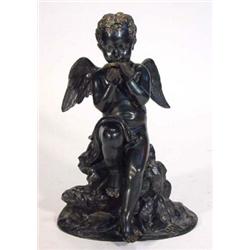 Bronze winged cherub drinking from a shell seated on a rock, 30cm high…
