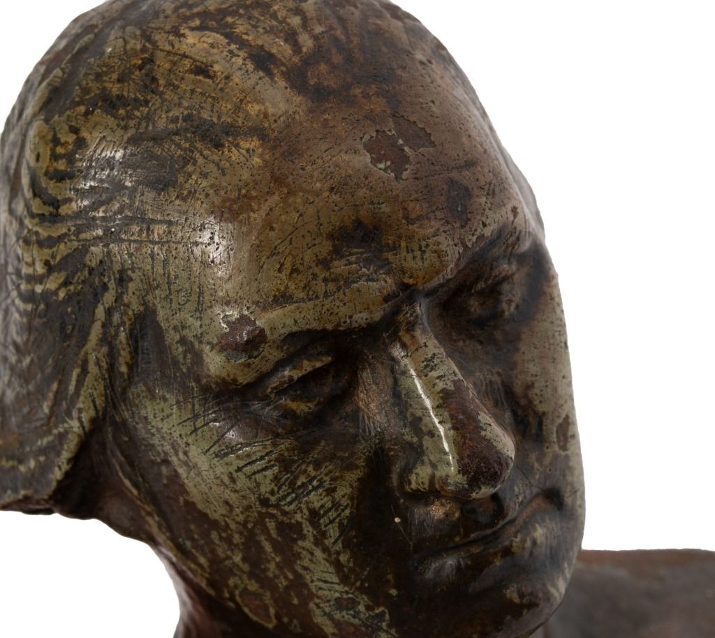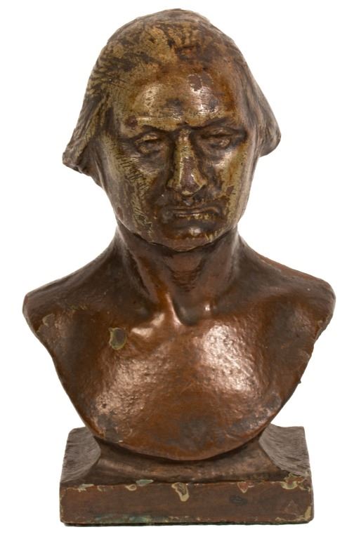 Item/Description: Bronzed plaster bust of George Washington. Six inches high. Sculpture is plaster with bronze finish. Unknown artist, no noticeable makers marks.