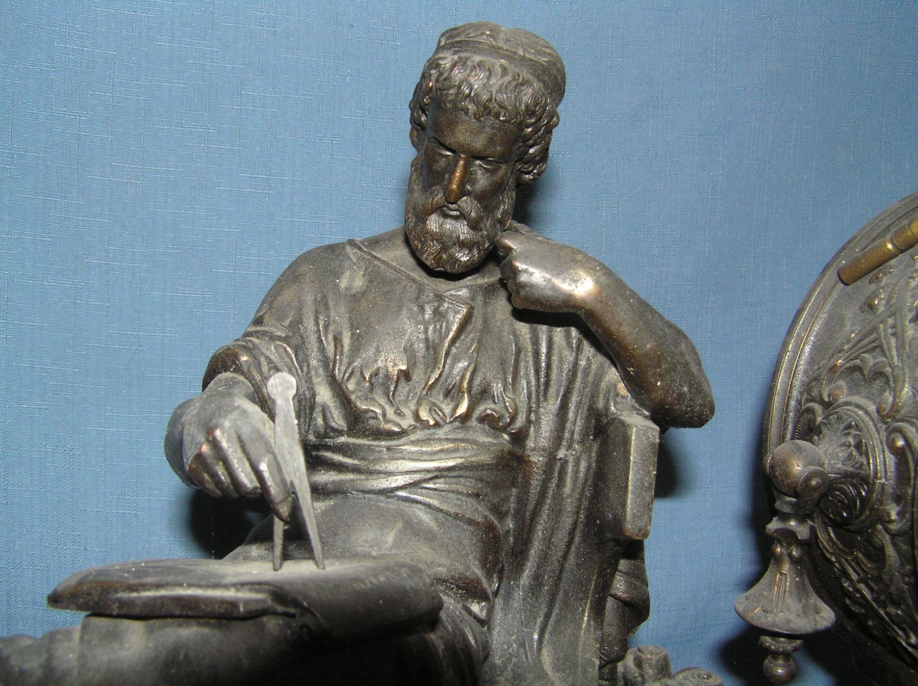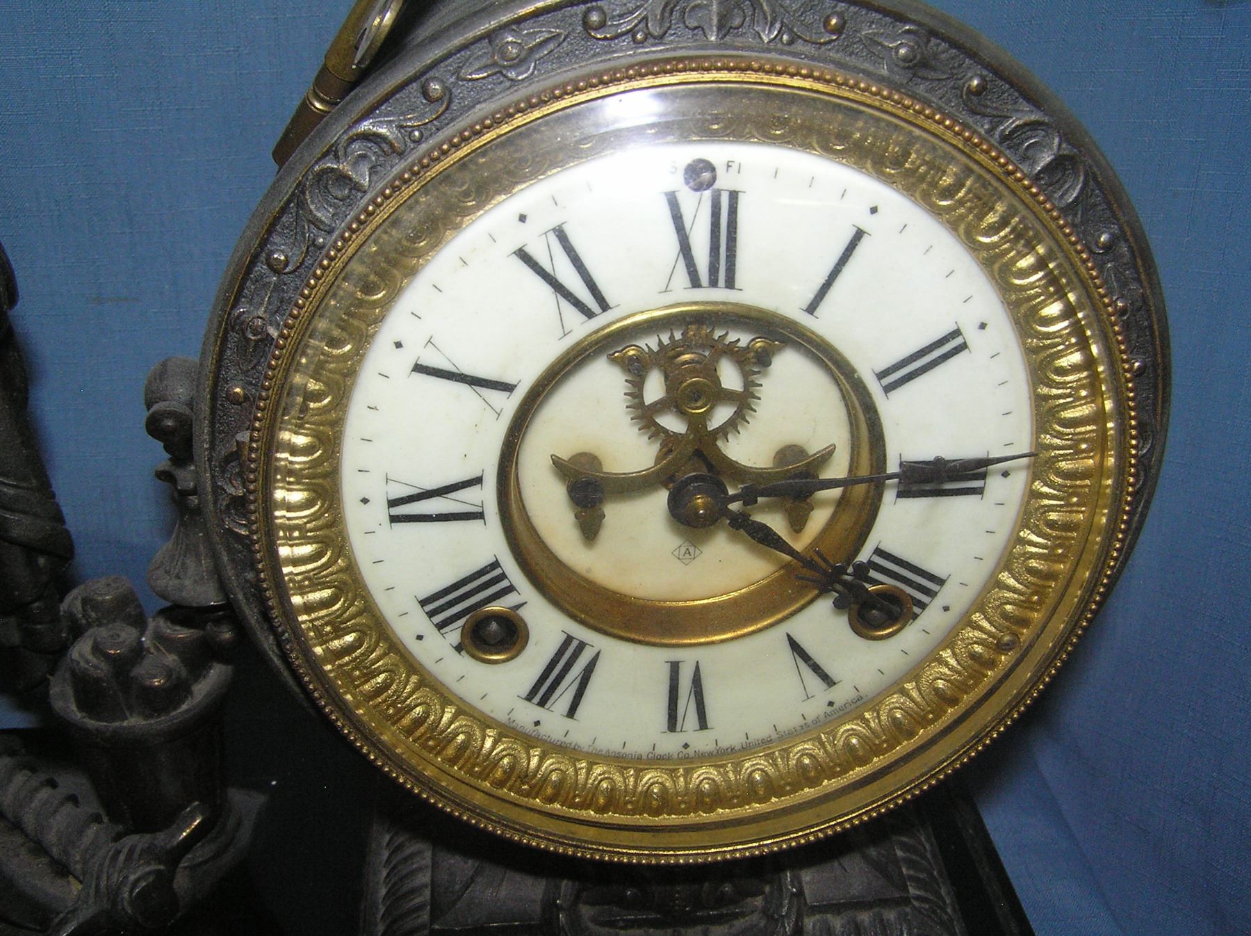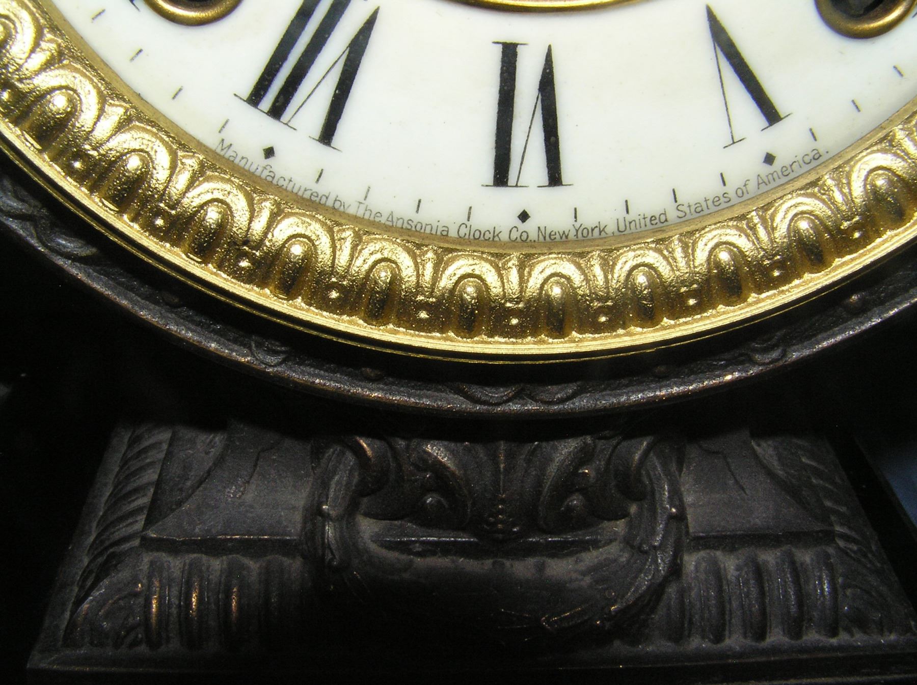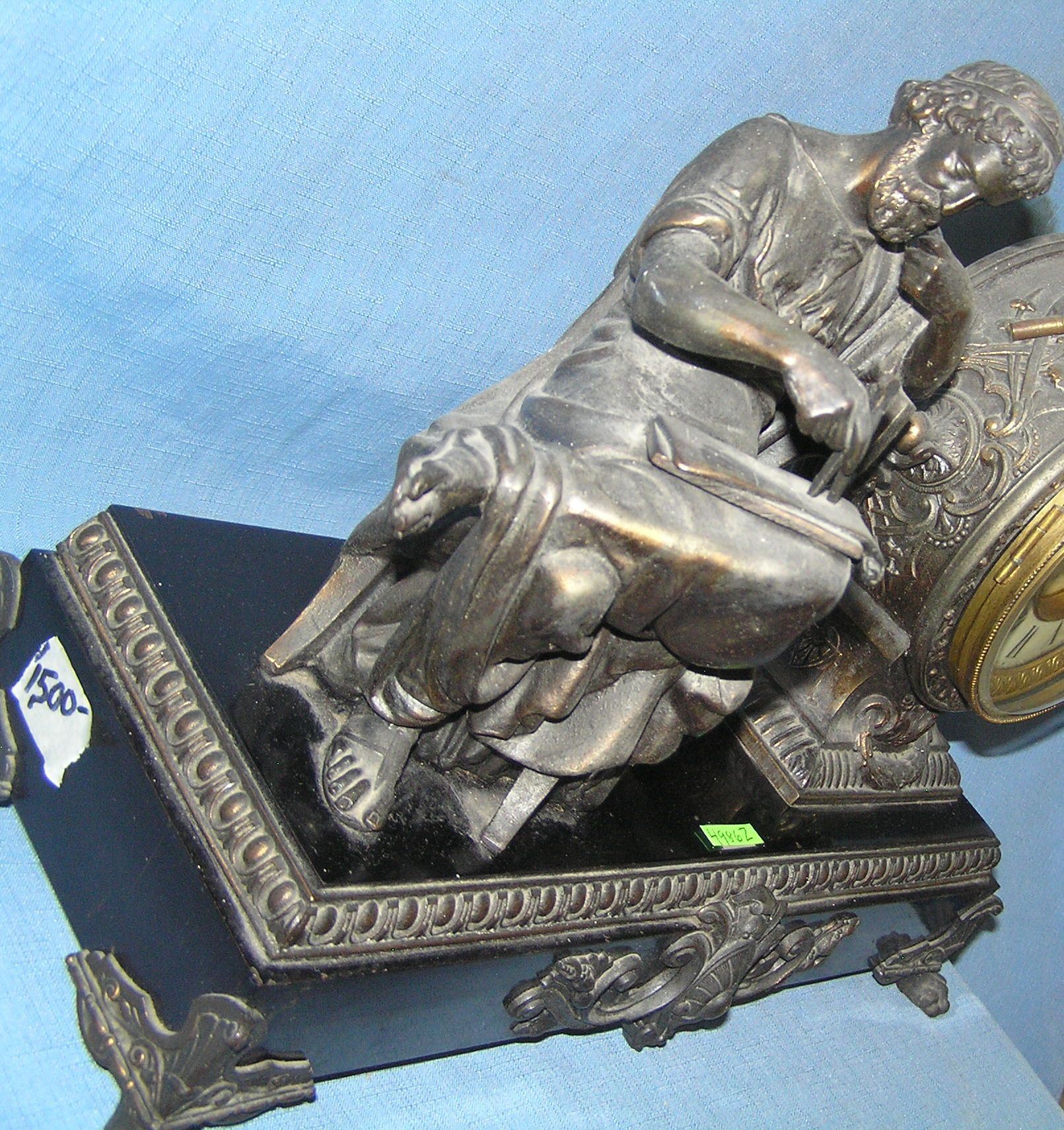 Bronzed over cast metal mantle clock with Cincinnatus figure by the Ansonia Clock Company of New York 19 inches high by 17 inches wide est. value $2000.00-$2200.00