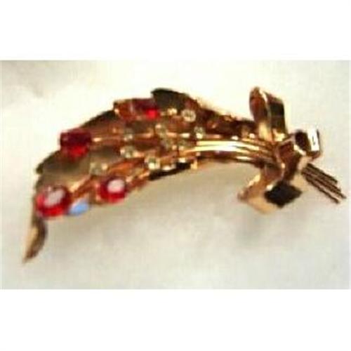 [Brooch Pin Coro Craft Copper Plated Sterling Ruby Glass Stones Leaf & Bow Design]{box28)[28x0v533pg70q100
