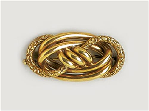 14 K gold, plain and engraved links, stylised knot form, circa 1940, marked, weight: 16.6 g, in good condition.