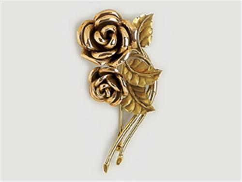 14 K gold, multicolour gold, bunch of roses form, circa 1940, marked, weight: 16.0 g, in good condition.