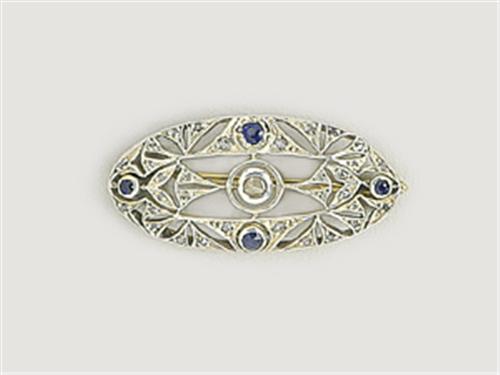 Gold and silver, pierced oval form, tiny diamond decoration and 4 sapphires, circa 1910, marked, weight: 4.5 g, restored, replaced stone.