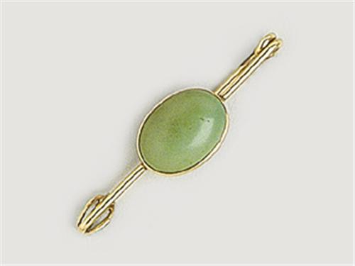 14 K gold, safety pin form, 1 big cabochon cut turquoise, circa 1930, unmarked, weight: 5.0 g, in good condition.