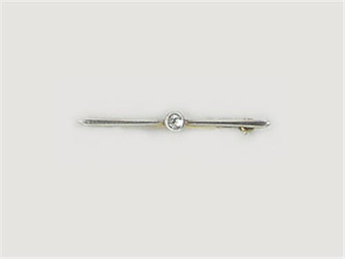14 K gold, short tapering baton with 1 brilliant cca. 0.10 ct (R2CrP1) in the middle, circa 1920, marked, weight: 1.8 g, in good condition.