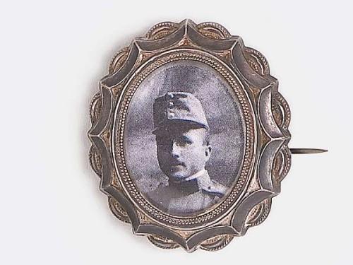 Silver, oval form with pressed decoration, photo locket on the front and back side, late 19th century, marked, weight: 11.0 g, the pin is metal replacement.