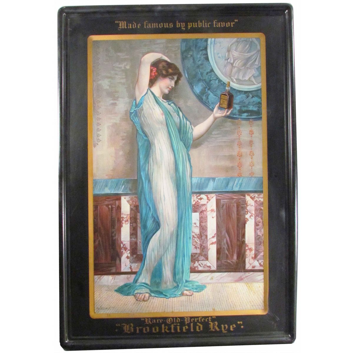 Brookfield Rye Self Framed Tin Sign. Entitled, "Made famous by public favor". Excellent condition. 23 X 33 inches.