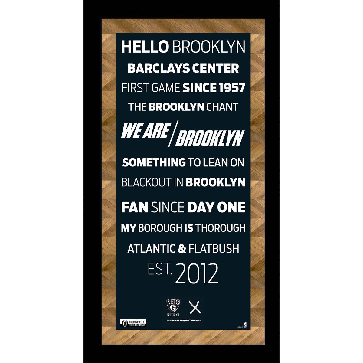 Brooklyn Nets Subway Sign w/ Game Used Net Mini Framed 10x20 Photo (Brick Background)