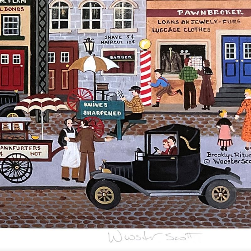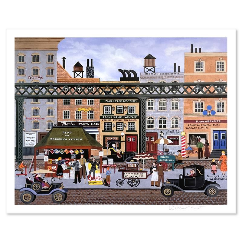 Brooklyn Rituals by Wooster Scott, Jane. "Brooklyn Rituals" is a limited edition lithograph on paper by Jane Wooster Scott, numbered and hand signed by the artist. Includes Letter of Authenticity. Measures approx. 16" x 13.5" (border), 14" x 11" (image).