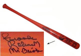 Brooks Robinson played his entire 23-year career with the Baltimore Orioles and was elected to the Baseball Hall of Fame in 1983. He began his professional baseball career as an 18 year old with the Orioles, and gained great renown for his fielding ability. Nicknamed "The Human Vacuum Cleaner", he is generally acclaimed as the greatest defensive third-baseman of all time. He won 16 consecutive Gold Glove Awards during his career. Brooks Robinson has hand autographed this Orange Cooperstown Engraved Stat Bat with Mr. Oriole inscription. MAB Hologram and Certificate of Authenticity from Athlon Sports.