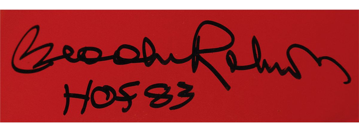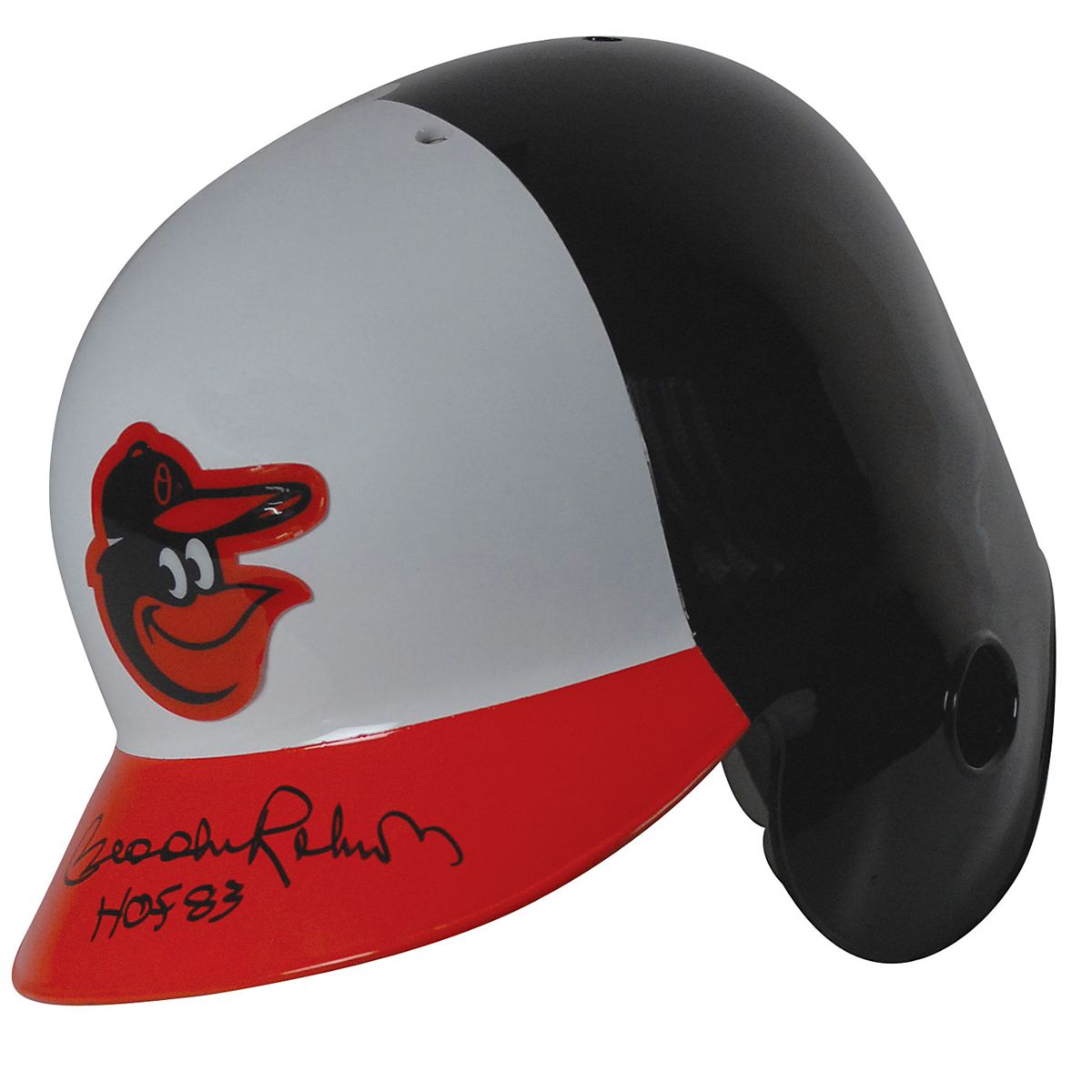 Official Rawlings replica Baltimore Orioles batting helmet, signed on the brim in black felt tip, “Brooks Robinson, HOF 83.” In fine condition.