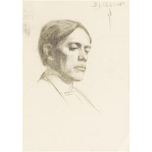<B>BROR JULIUS OLSSON NORDFELDT (American, 1878-1955)</B></I><BR><I>Portrait of a Man</B></I><BR>Charcoal on laid paper<BR>24-1/2 x 18-3/4 inches (62.2 x 47.6 cm)<BR>Signed upper right:<I> B.J. Olsson</B></I><BR> <B>Condition Report:</B> Minor toning, surface grime, handling wrinkles, creased corners and tears and losses to the edges of the paper, the longest being on the left side and extending 3 inches towards the shoulder<BR><BR><b>Shipping:</b> Requires 3rd Party Shipping (<a target="_blank" href="http://www.heritageauctions.com/common/shipping.php">view shipping information</a>)