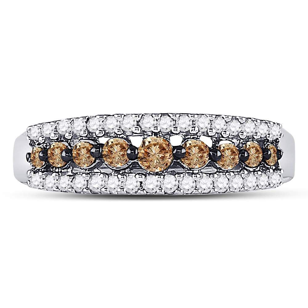 14kt White Gold Womens Round Brown Diamond Band Ring 1/2 Cttw