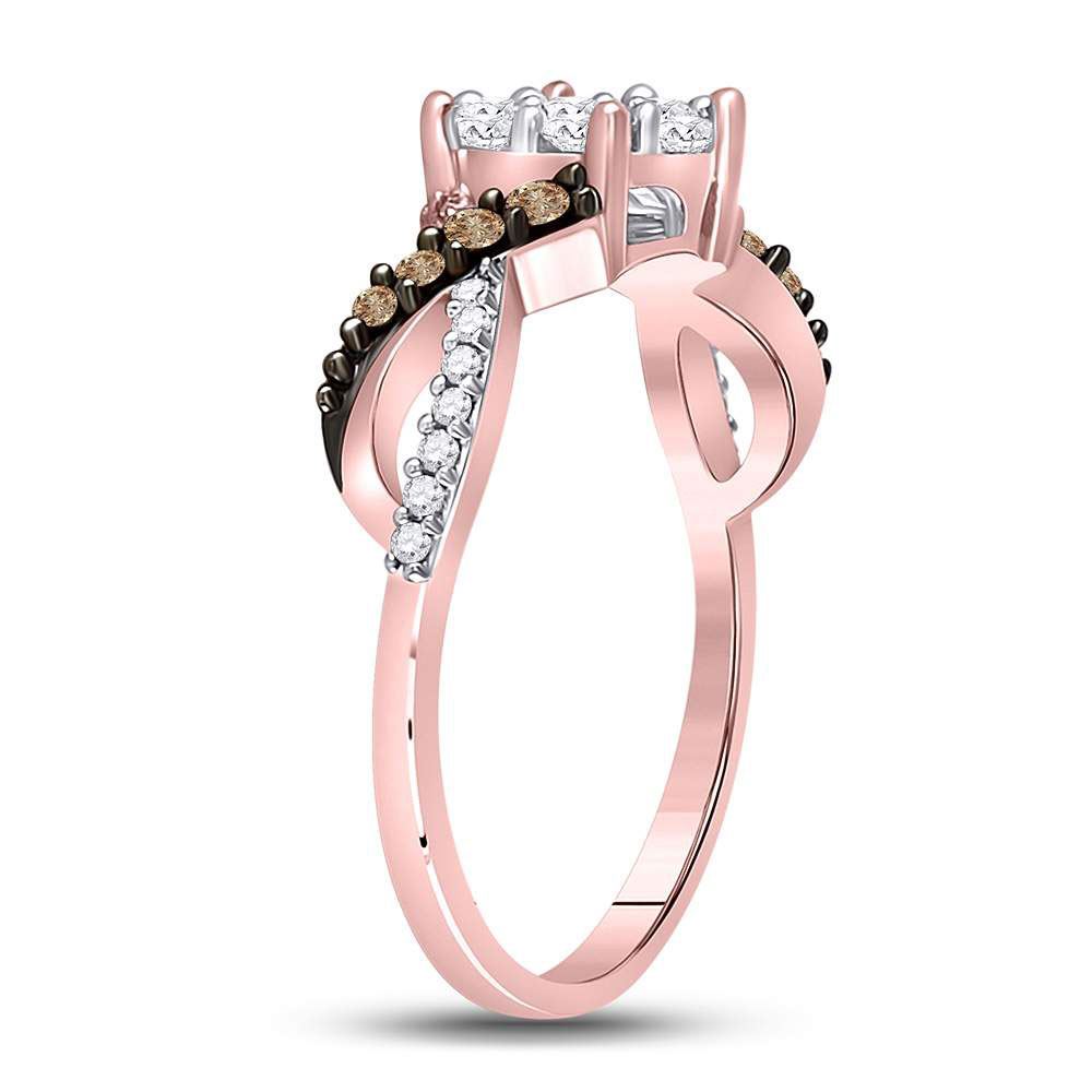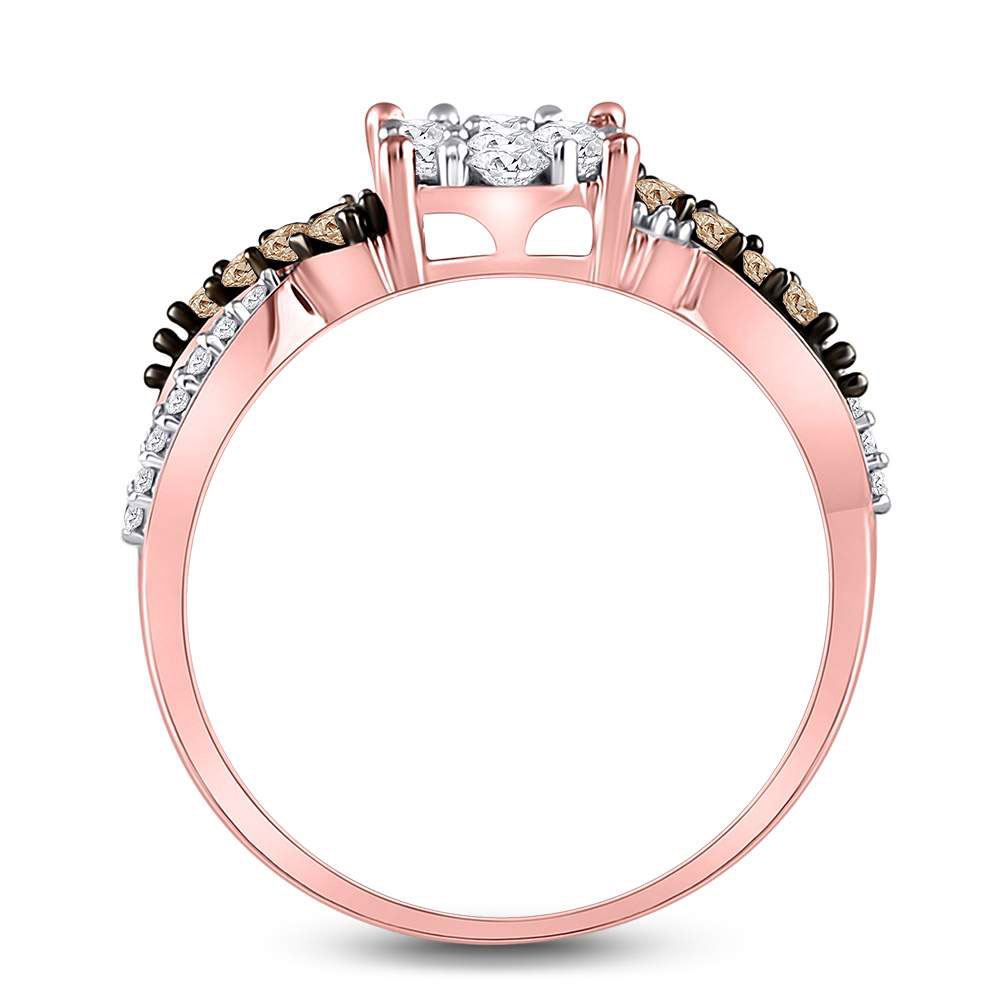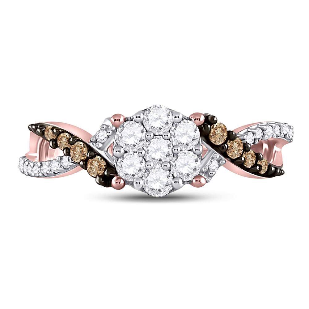 10kt Rose Gold Womens Round Brown Diamond Cluster Ring 1/2 Cttw