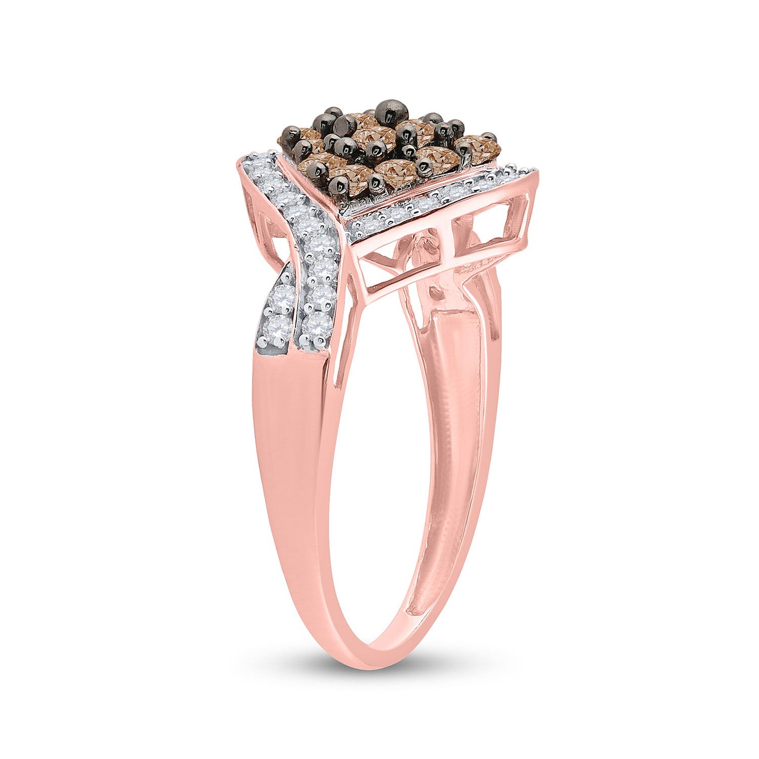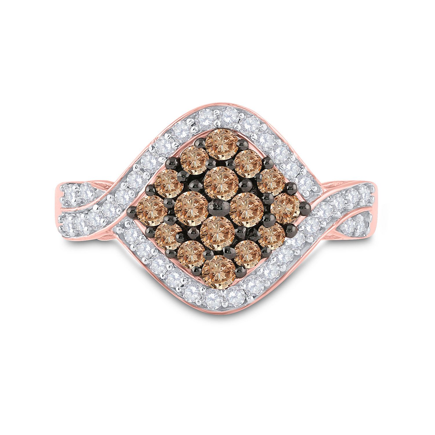 10kt Rose Gold Womens Round Brown Diamond Cluster Ring 1 Cttw