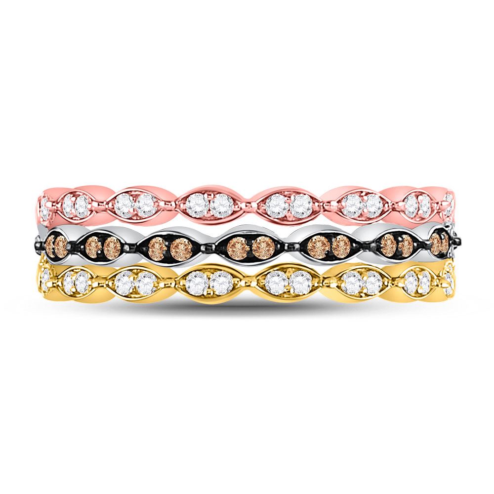 10kt Tri-Tone Gold Womens Round Brown Diamond Convertible Band Ring 3/8 Cttw