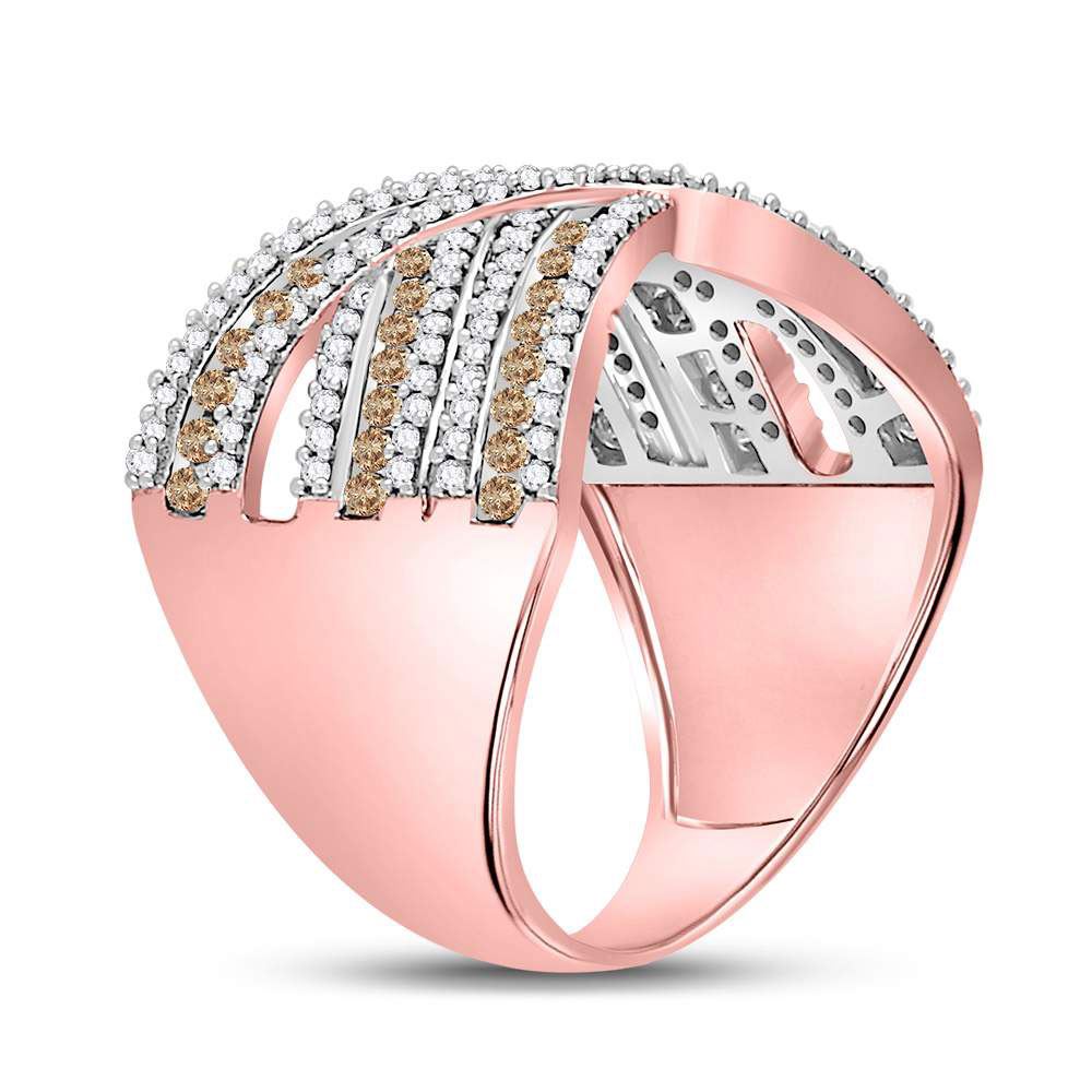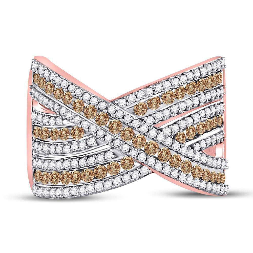 10kt Rose Gold Womens Round Brown Diamond Crossover Ring 1 Cttw