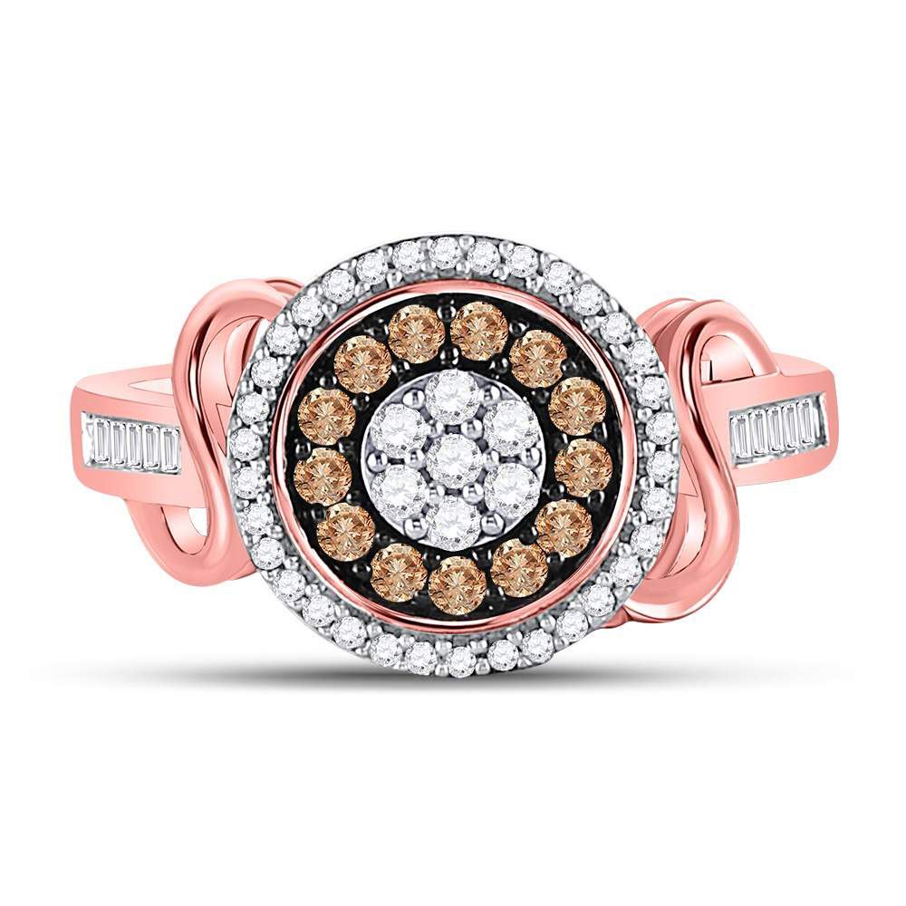 10kt Rose Gold Womens Round Brown Diamond Flower Cluster Ring 1/2 Cttw