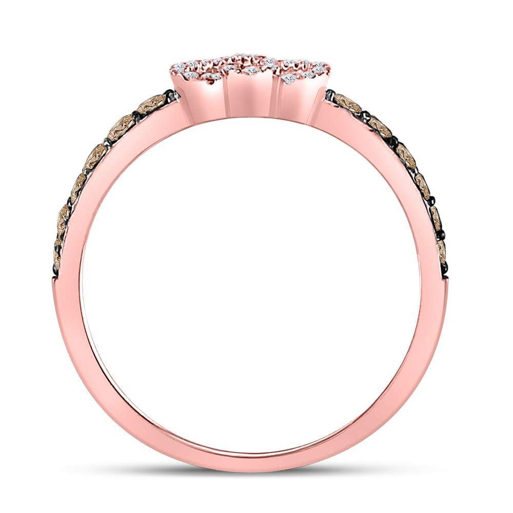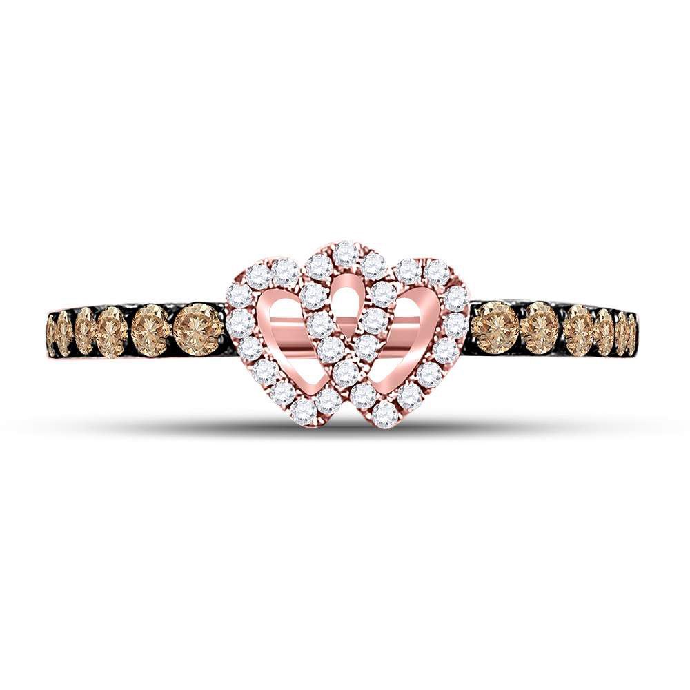 10kt Rose Gold Womens Round Brown Diamond Heart Ring 1/3 Cttw