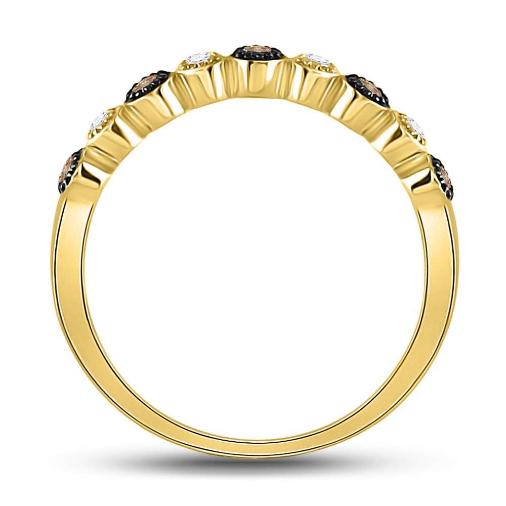10kt Yellow Gold Womens Round Brown Diamond Milgrain Dot Band Ring 1/8 Cttw