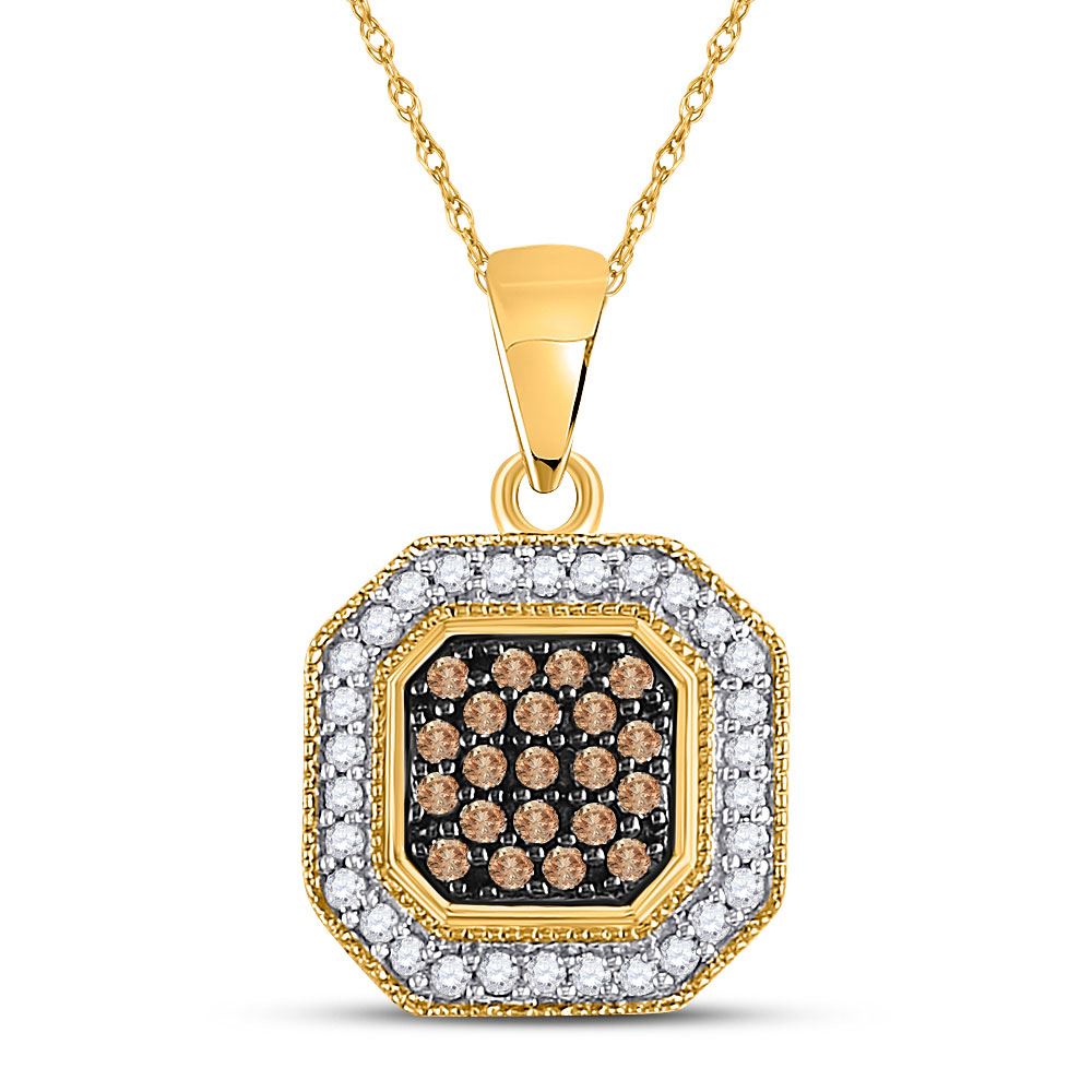10kt Yellow Gold Womens Round Brown Diamond Octagon Cluster Pendant 1/3 Cttw