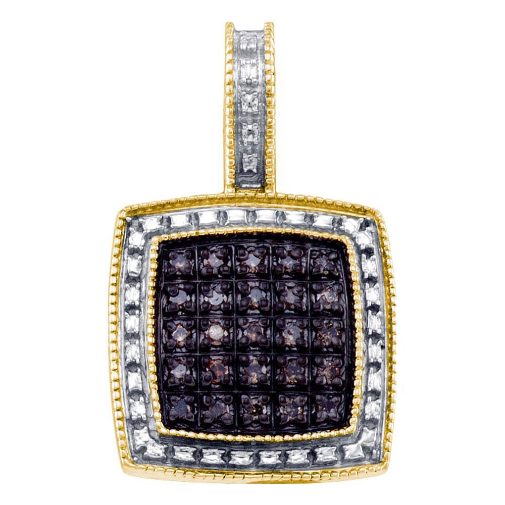 Yellow-tone Sterling Silver Womens Round Brown Diamond Square Cluster Pendant 1/5 Cttw