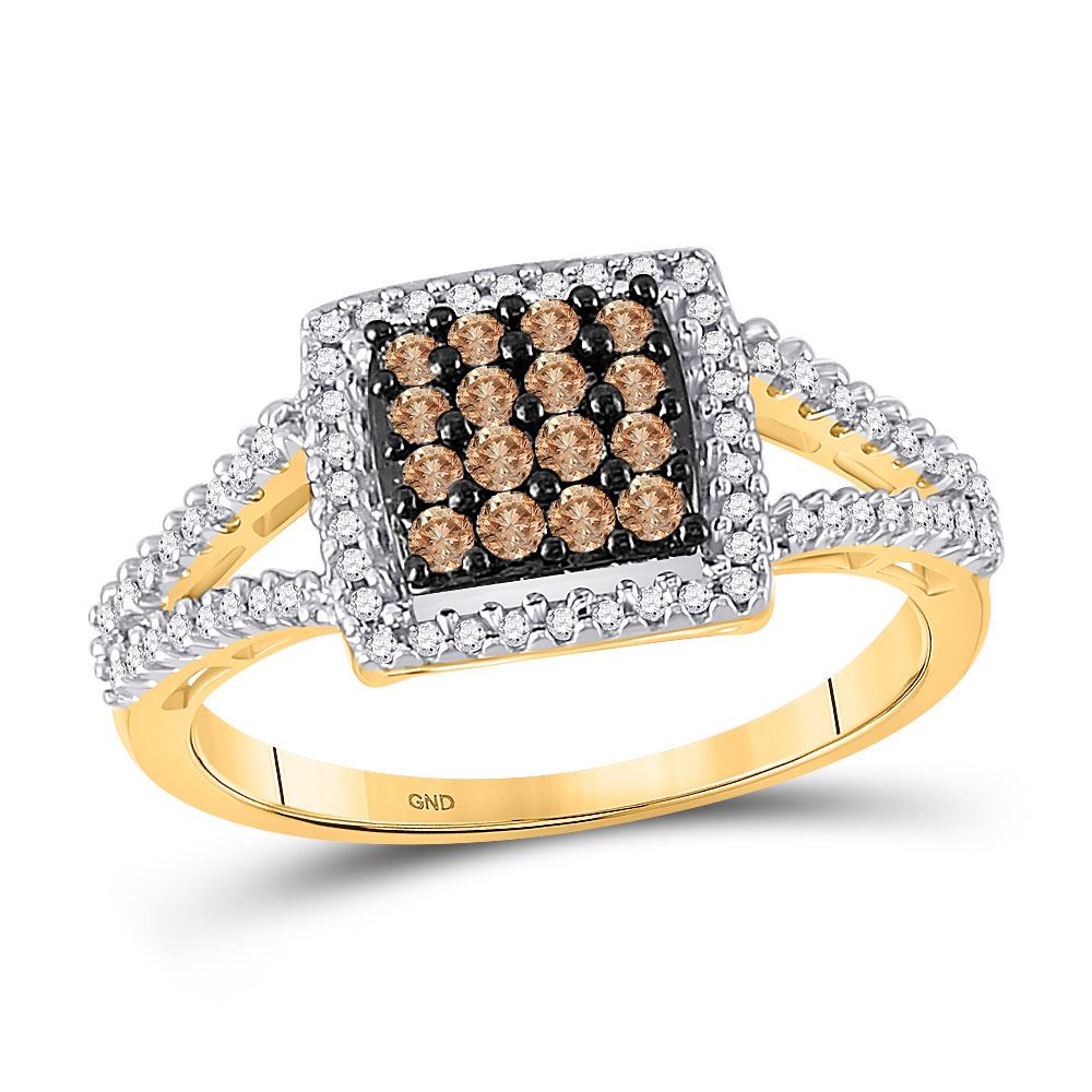 10kt Yellow Gold Womens Round Brown Diamond Square Cluster Ring 1/2 Cttw
