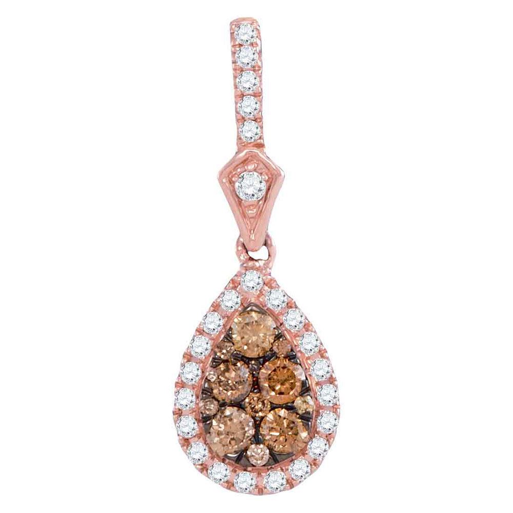 14kt Rose Gold Womens Round Brown Diamond Teardrop Pendant 1/2 Cttw