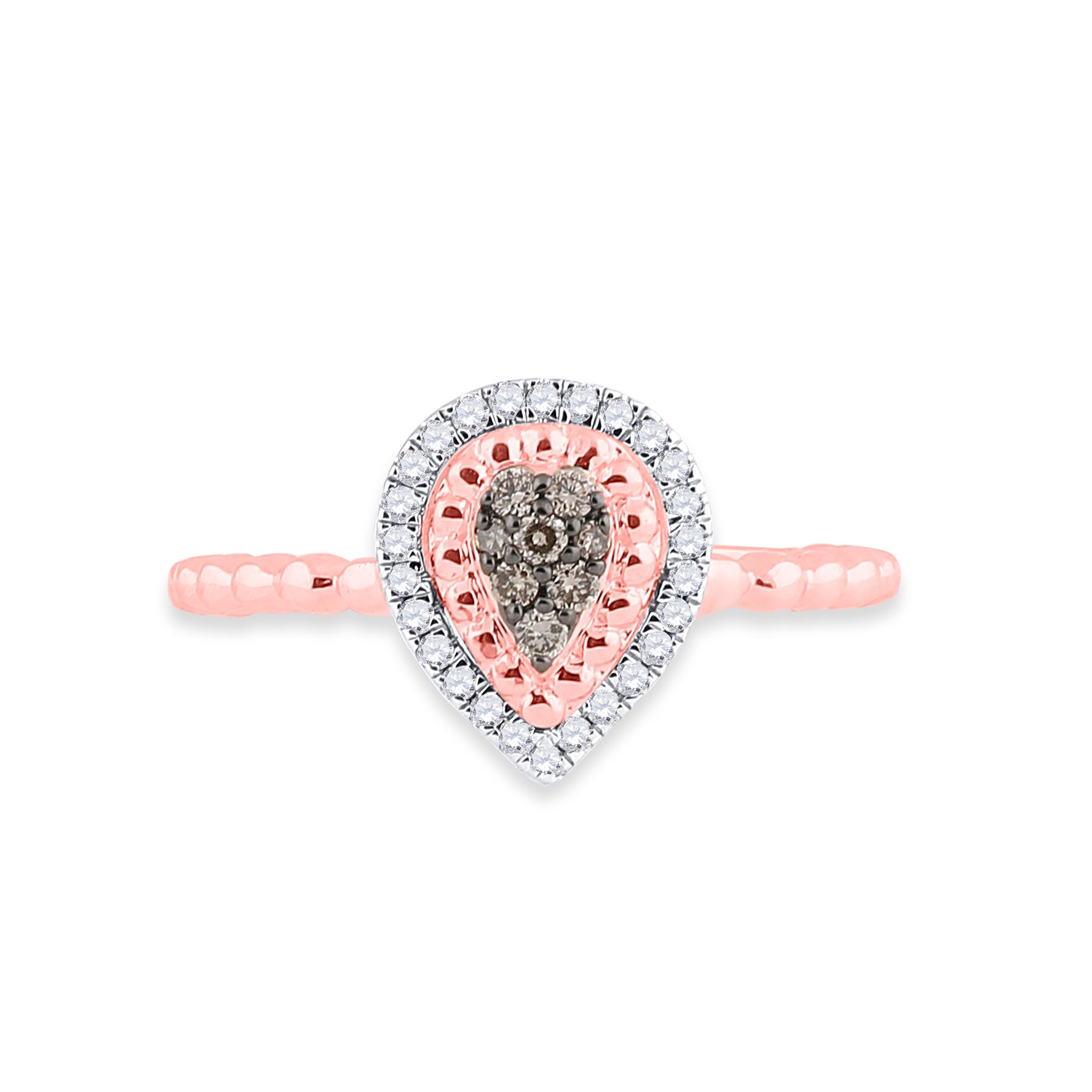 10kt Rose Gold Womens Round Brown Diamond Teardrop Ring 1/5 Cttw