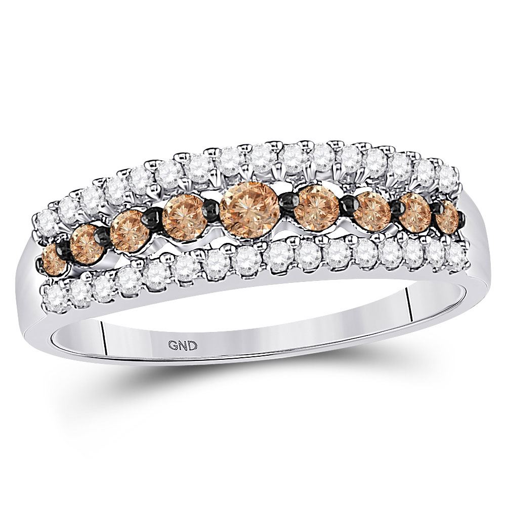 10kt White Gold Womens Round Brown Diamond Triple Row Band Ring 1/2 Cttw