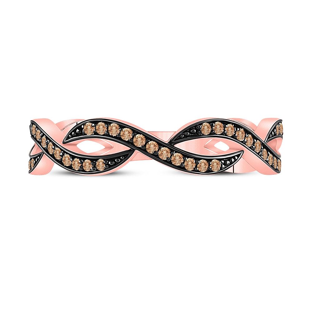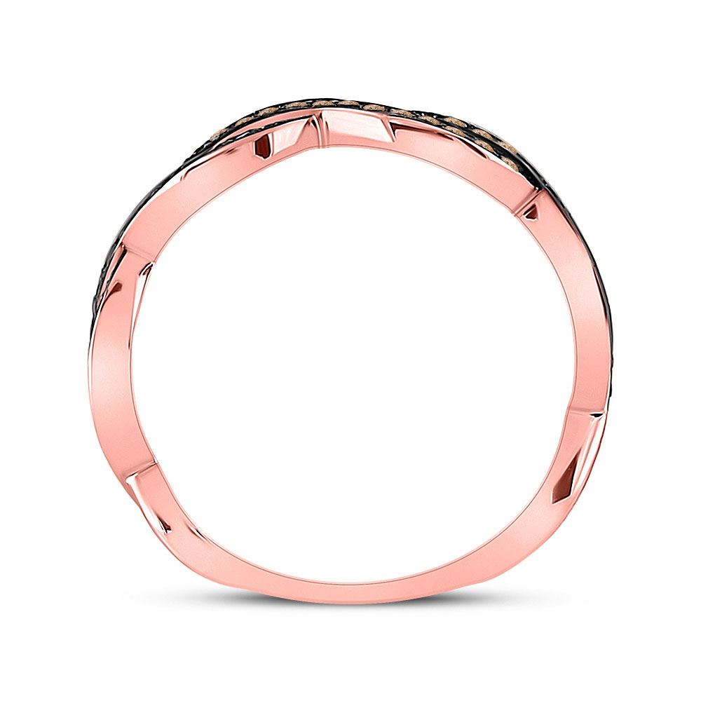 10kt Rose Gold Womens Round Brown Diamond Twist Band Ring 1/5 Cttw