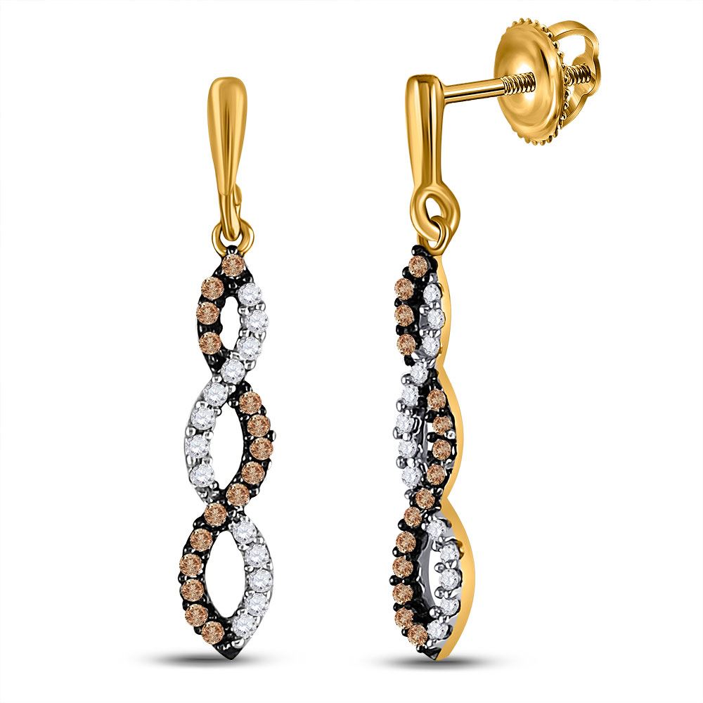 10kt Yellow Gold Womens Round Brown Diamond Twist Dangle Earrings 1/5 Cttw