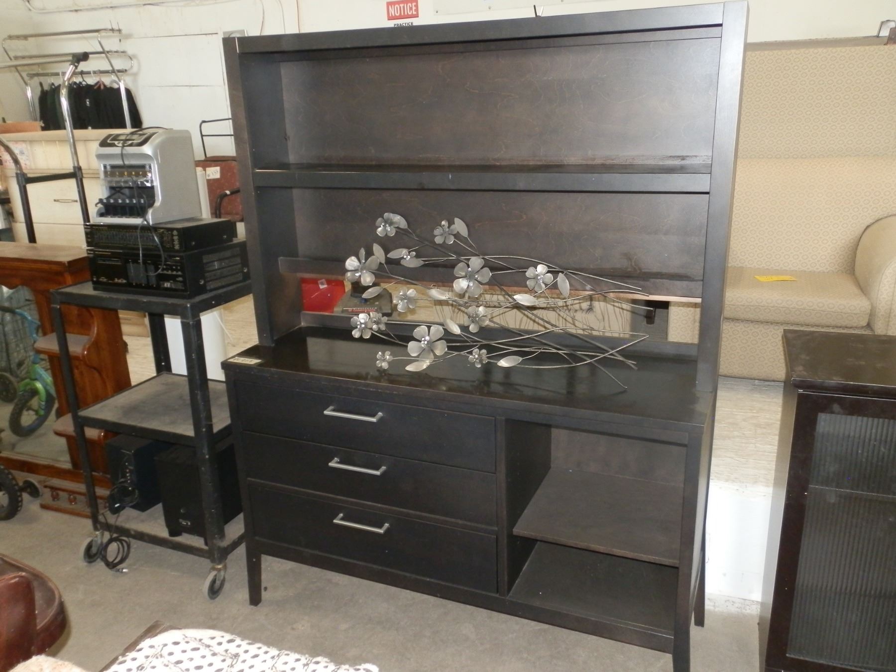 Brown Display Cabinet with wall ornament , 72 1/4"H 56"L 18 1/2"D