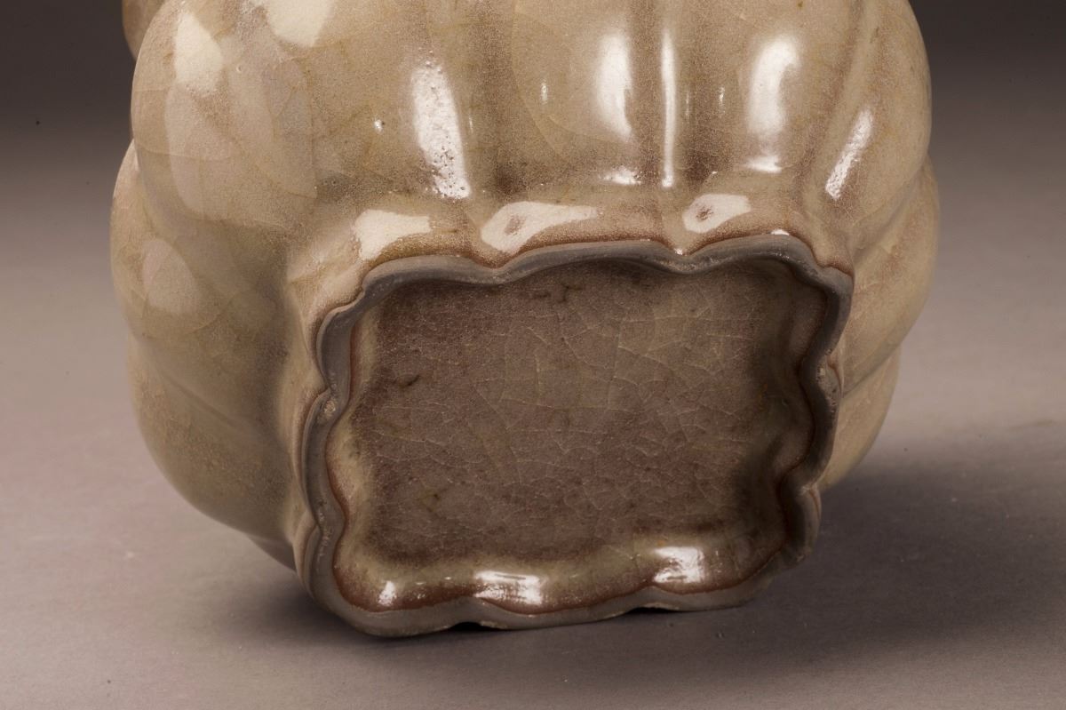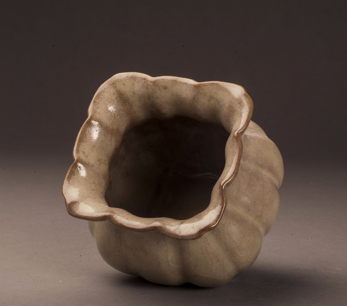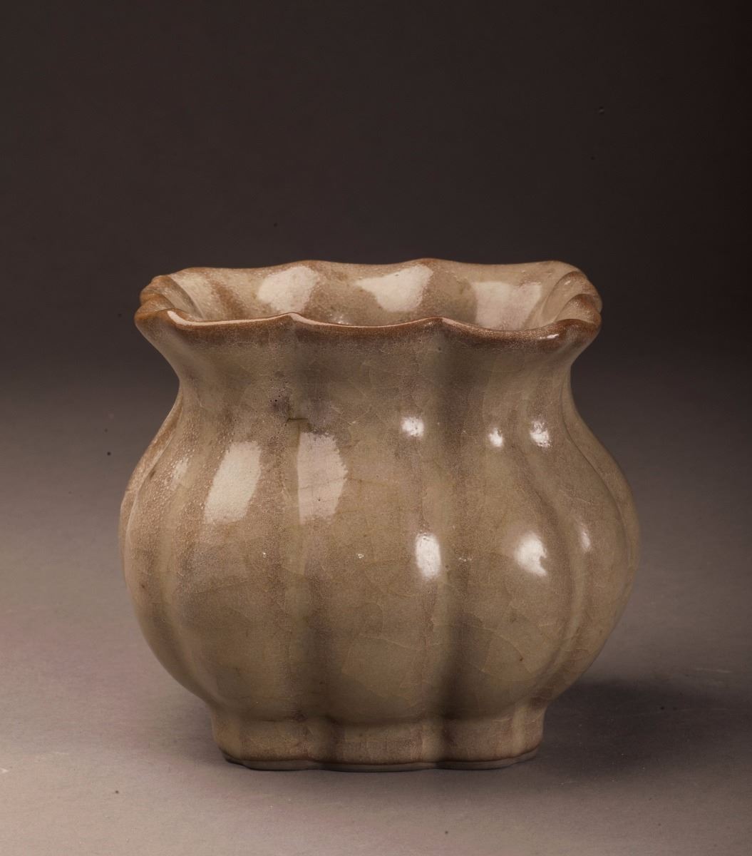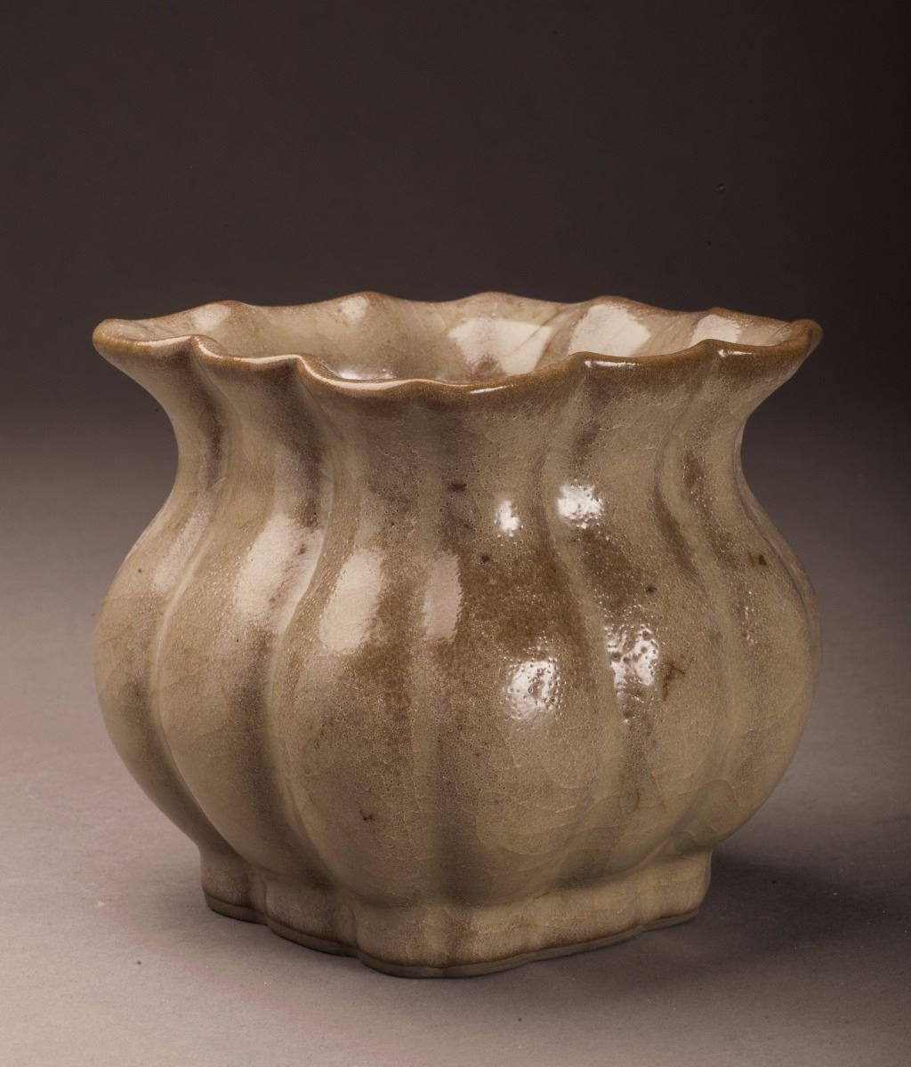 With Chrysanthemum Incised At The Cavetto, This Fine Porcelain Pot Within The Alternative Light Brown Tone Throughout. Flower-edge At Rim, Raised To The Short And Square Foot At Bottom.
