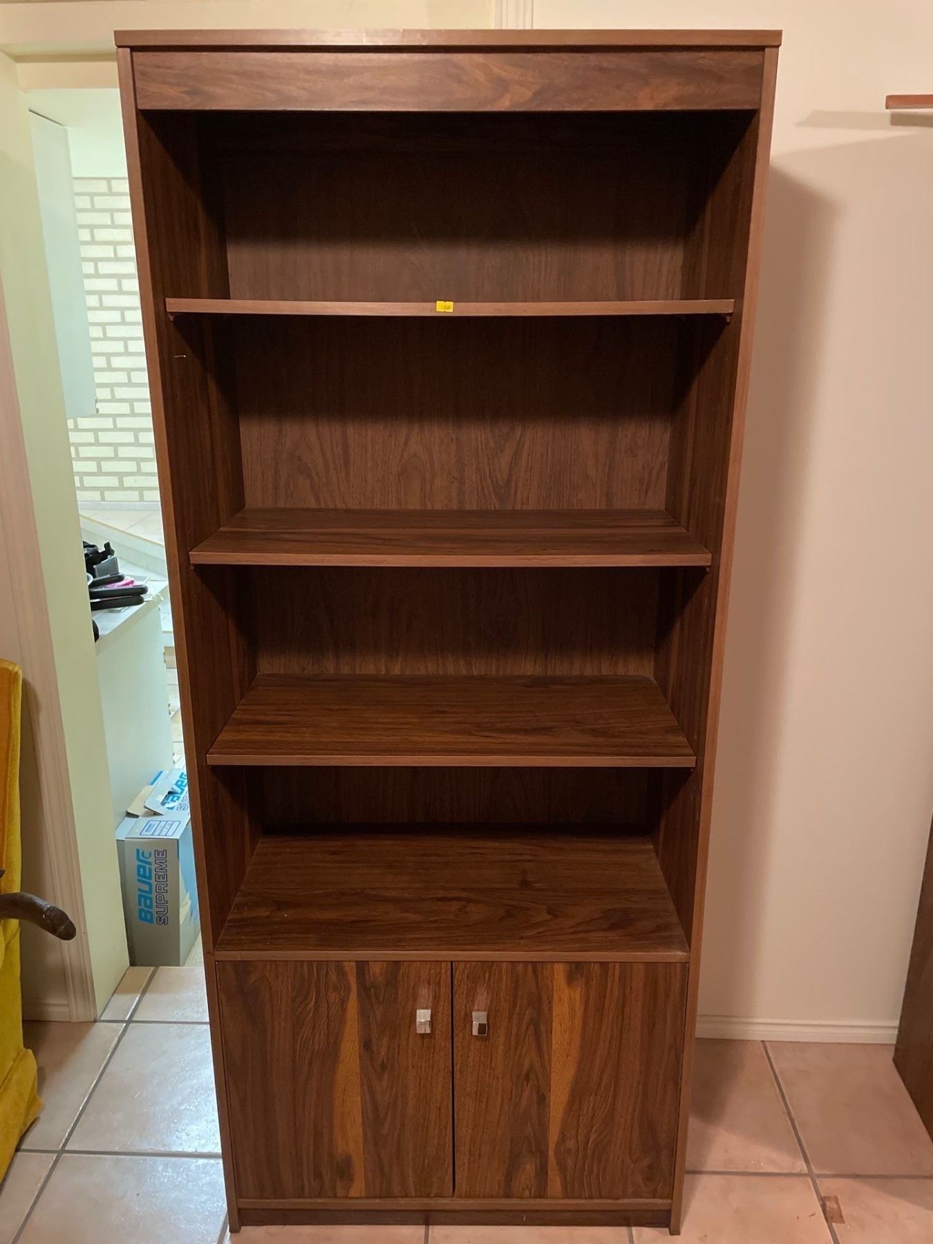 Brown Hardwood Shelf/Bookcase with 2 Cabinet Doors at the Bottom 30.5L x 15.5D x 72H