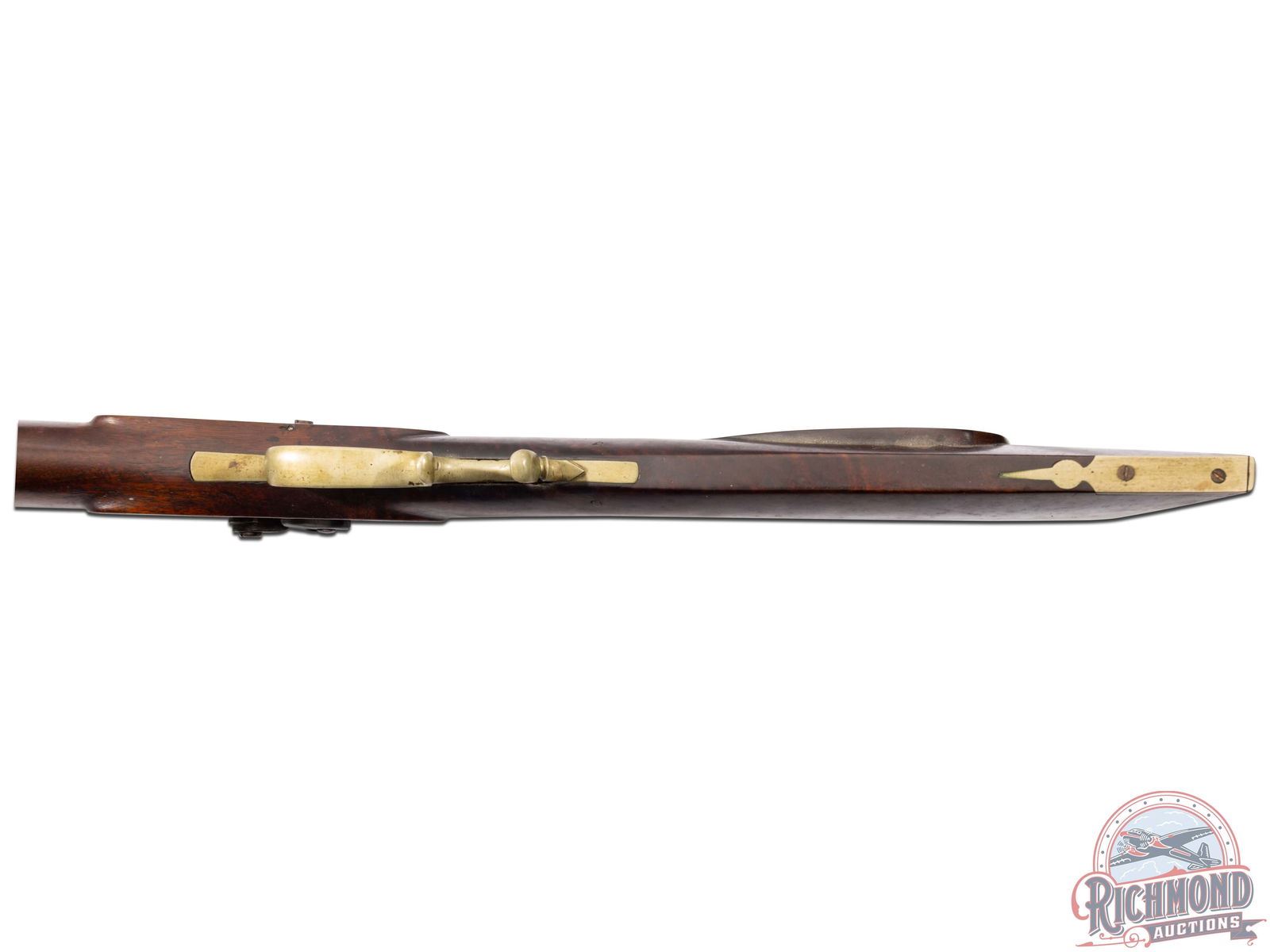 Overall good with metal turning plum. Wood has traces of original finish with repair at breech and light handling marks. Good bore and mechanics. Tools are in good condition.