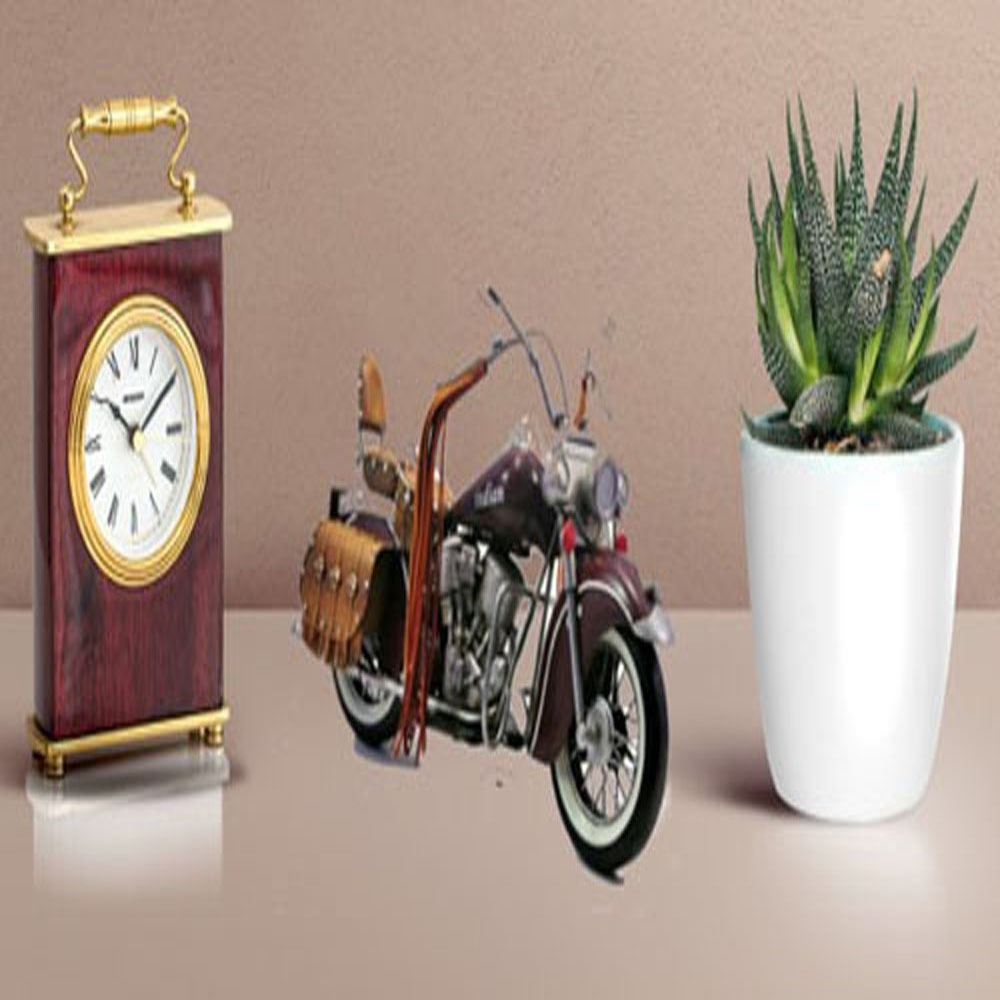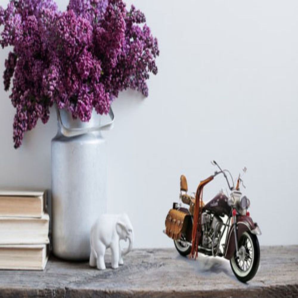 Beautifully handmade and so each piece is a unique collectible and show piece for your home. Decorate for any table, desk, or shelf in sporty fashion with Our Rustic Iron Indian Bike Bike Sculpture. Featuring a rustic iron frame, this charming vintage Motorcycle includes detailed craftsmanship. The silver and brown metal seat and handlebars are finished in natural colors. Decoration parts comes with stickers to match your scene, Plastic die cast metal, Ultra precision design with some moving parts where applicable, Decoration parts decals accurately reproduced. Size: 7X13X7 Inches. Weight: 10 LBS.