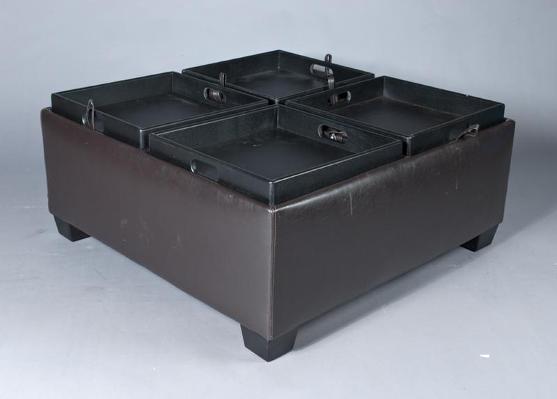 Four sections, each top lifts out and can be used as a tray with handles. 19" H x 41" Sq. Good condition with minor wear from use.