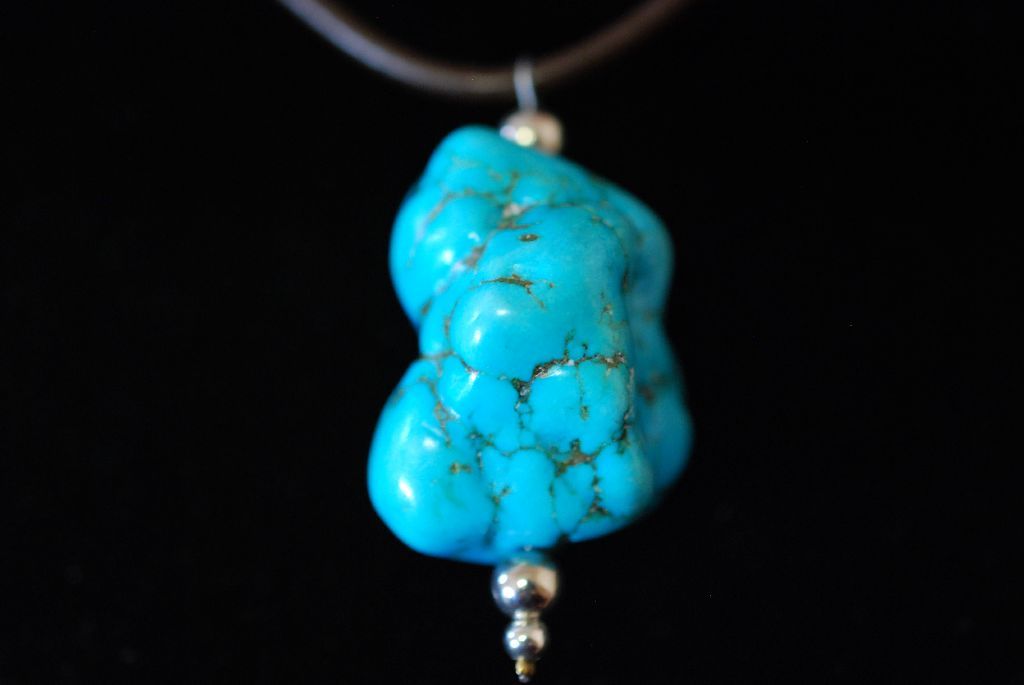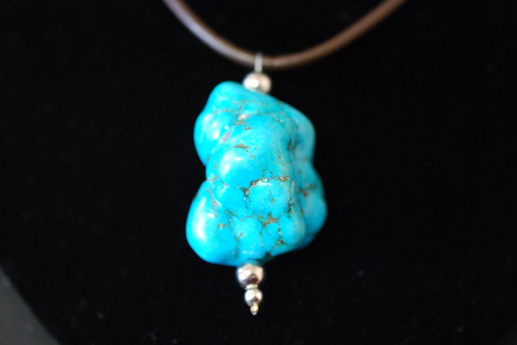 Brown Leather Necklace With Large Turquoise Charm; EST. $5-10