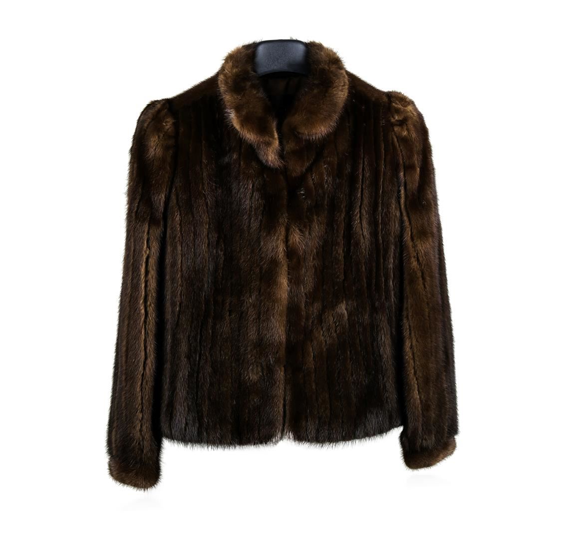 One Brown Lunaraine Mink Jacket. Corduroy-cut jacket. Small length: 22" long. Price new retail: $2000.