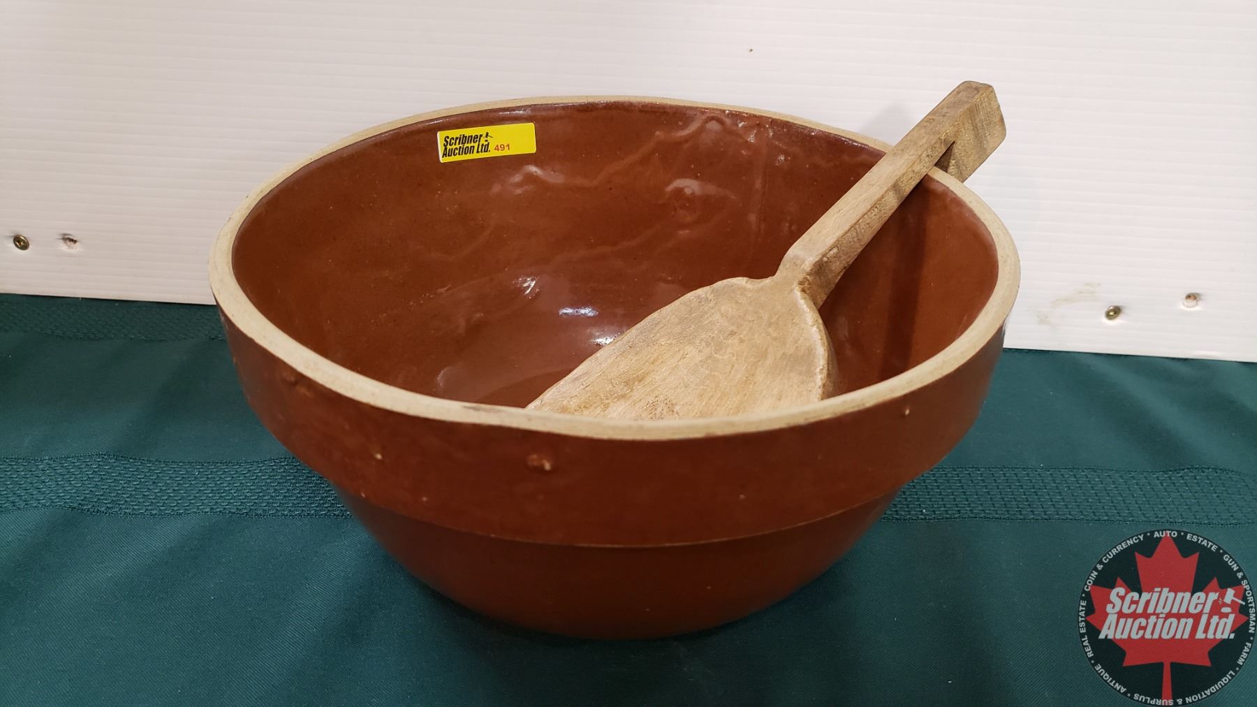 Brown Mixing Bowl & Wooden Paddle