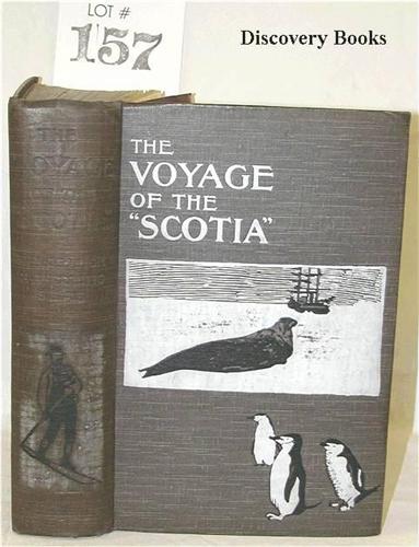 Brown, R. N. Rudmose, R. C. Mossman & J. H. Harvey. THE VOYAGE OF THE "SCOTIA". BEING THE RECORD OF A VOYAGE OF EXPLORATION IN ANTARCTIC SEAS. By Three of the Staff. Edinburgh: Wm. Blackwood & Sons 1906 xxiv,375pp. Photo plates, 3 maps incl 2 folding. Original decorated cloth, lettered & decorated in white on front & spine, t.e.g. The white lettering & decoration on the spine is almost completely gone (a common problem with this book), else a very good, clean copy. Inscribed & signed to "Sir Robert B.Findlay, with Compliments from Wm. S. Bruce" and with the decorative bookplate of The Commonwealth Trans-Antarctic Expedition.