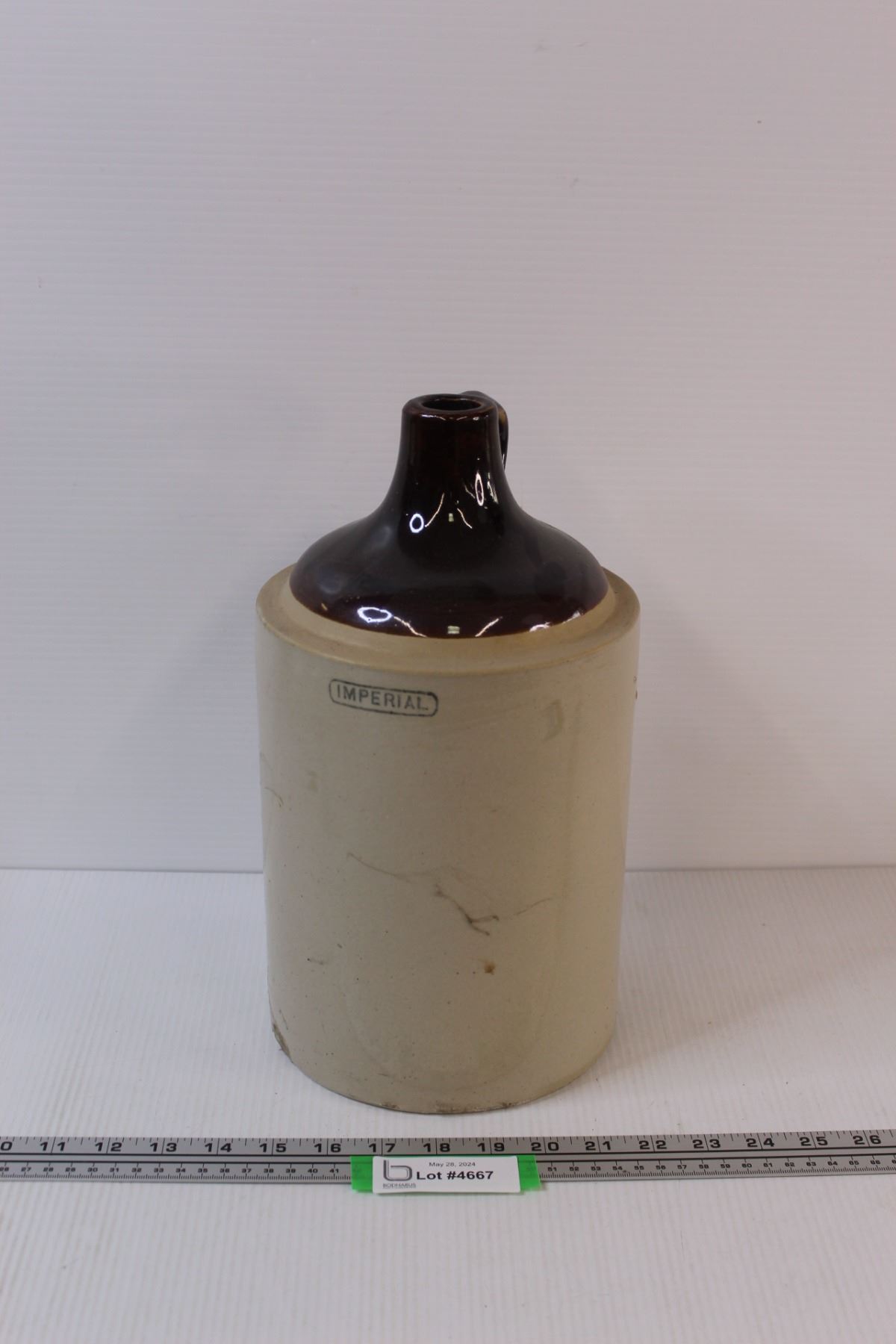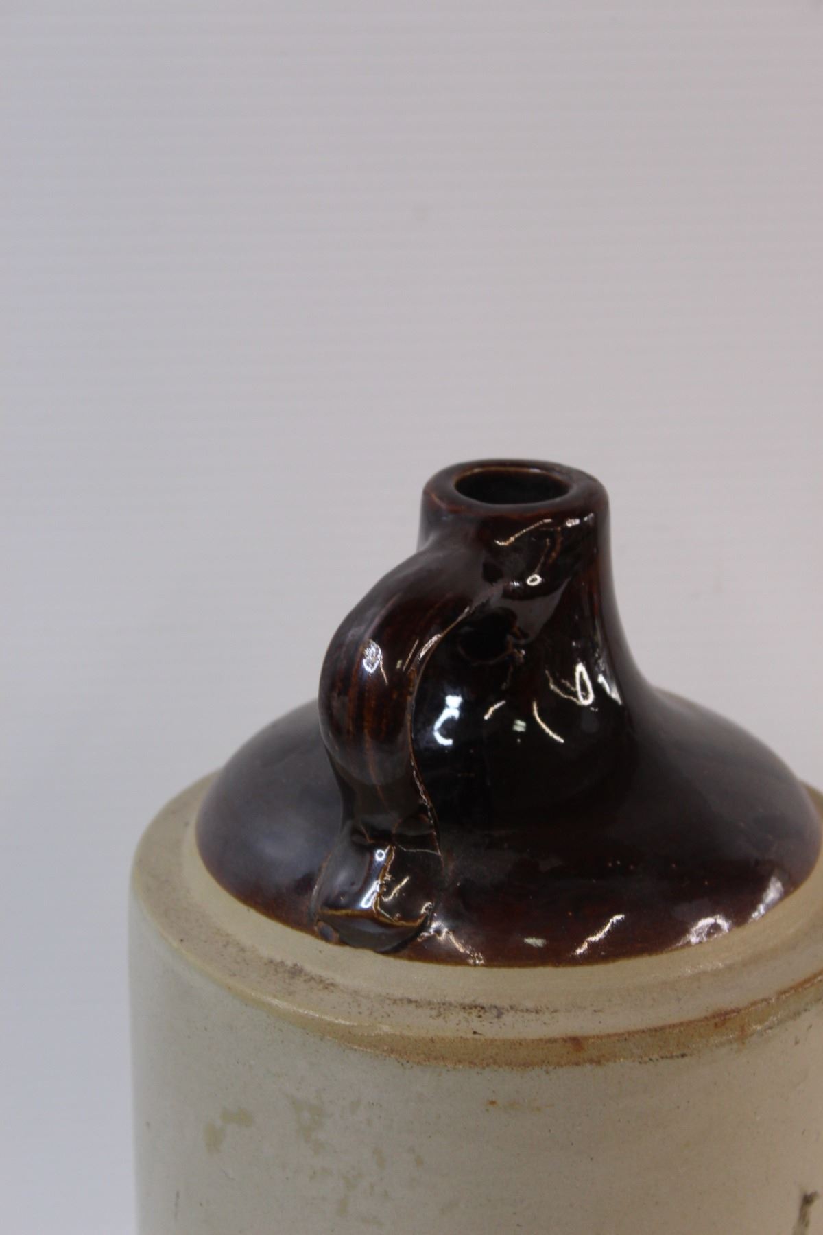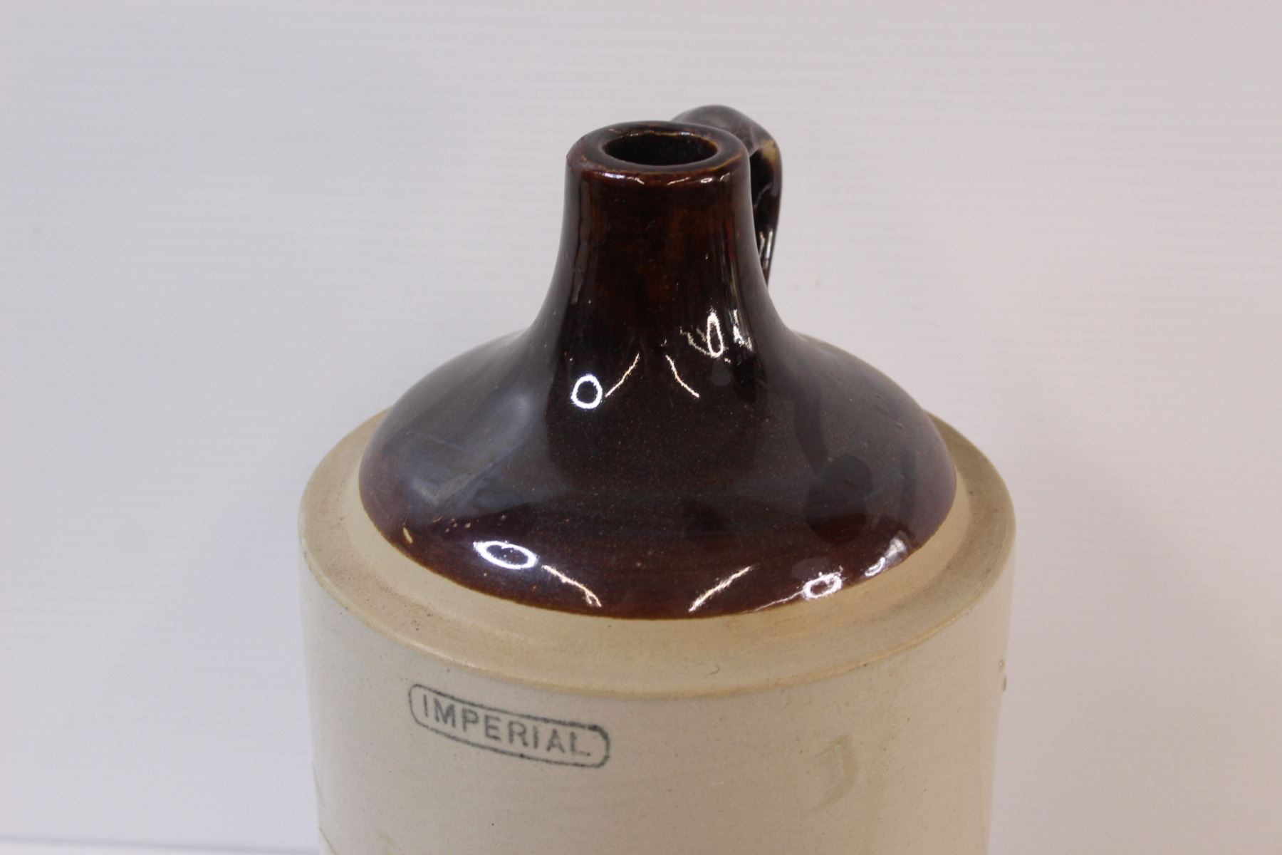 Brown Top Crock Jug - 13"x7" - Has Chip On Bottom as Pictured