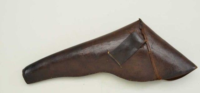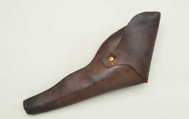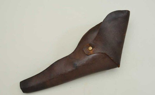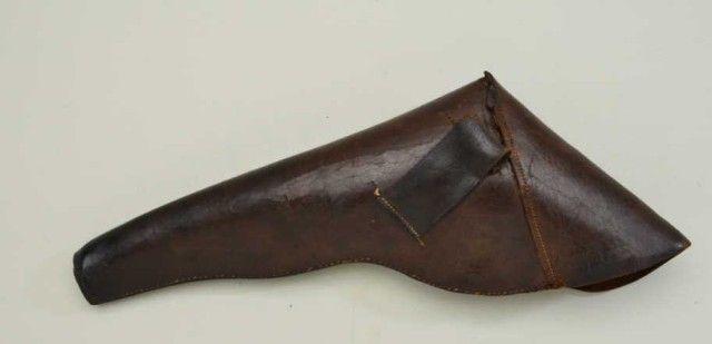 Brown leather flap holster circa 1850’s – 60’s from old New England collector who thought it would be Confederate made for third model Colt Dragoon. Somewhat crude single stitching and belt restored orrepaired at time of use. Est.; $600-$1,200